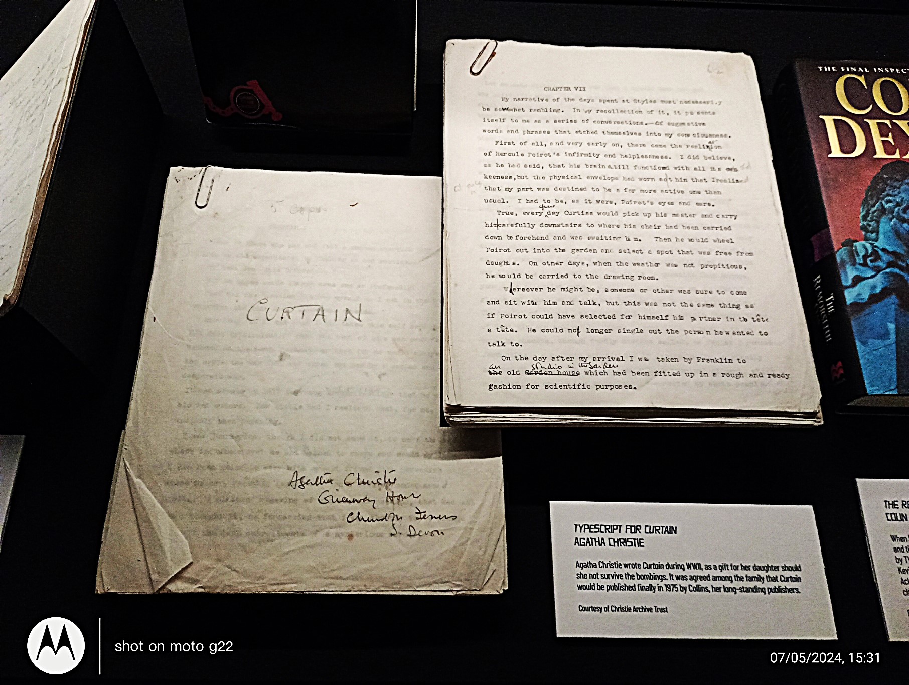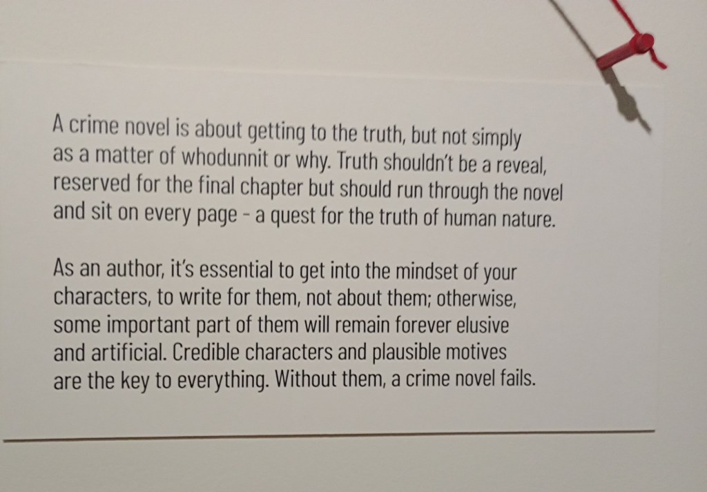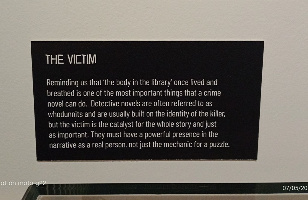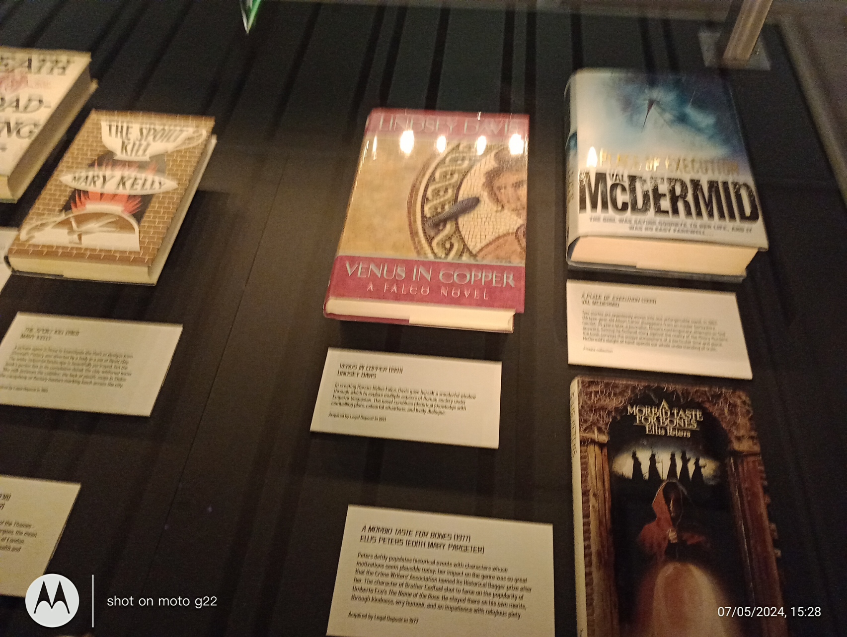 For a donation of 5 or ten pounds the exhibition is a pleasant way of sourcing information about the crime books written in the UK. The exhibition largely comprises novels, and some items used by writers, an informative map of the of where writers lived and some the locations for their fiction.