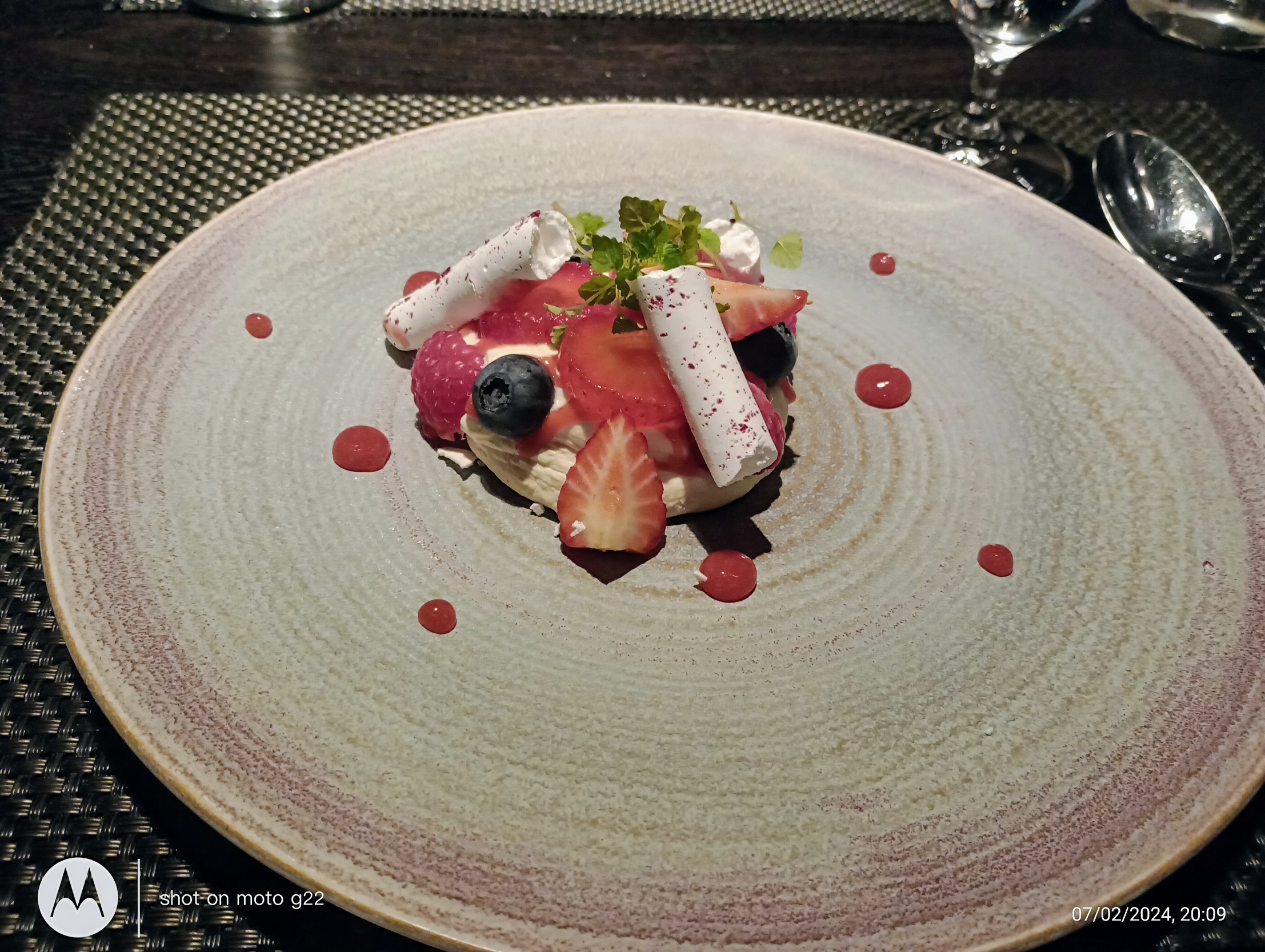 Dessert: BERRIES & CREAM Elderflower & Meringue…HONEY CAKE