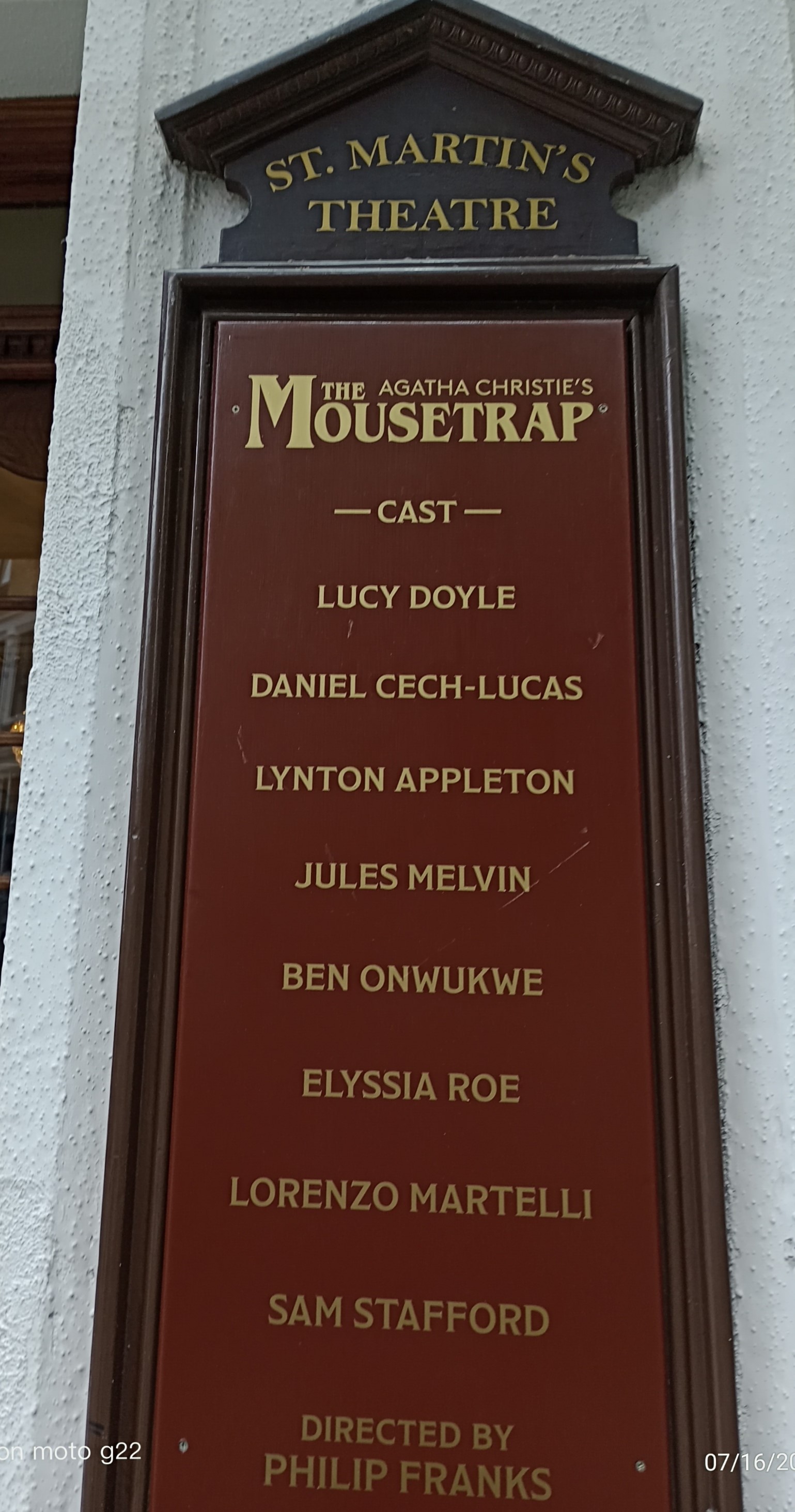 Upon returning to London, I followed up the past Wallingford experience with attending the famous Agatha Christie play.