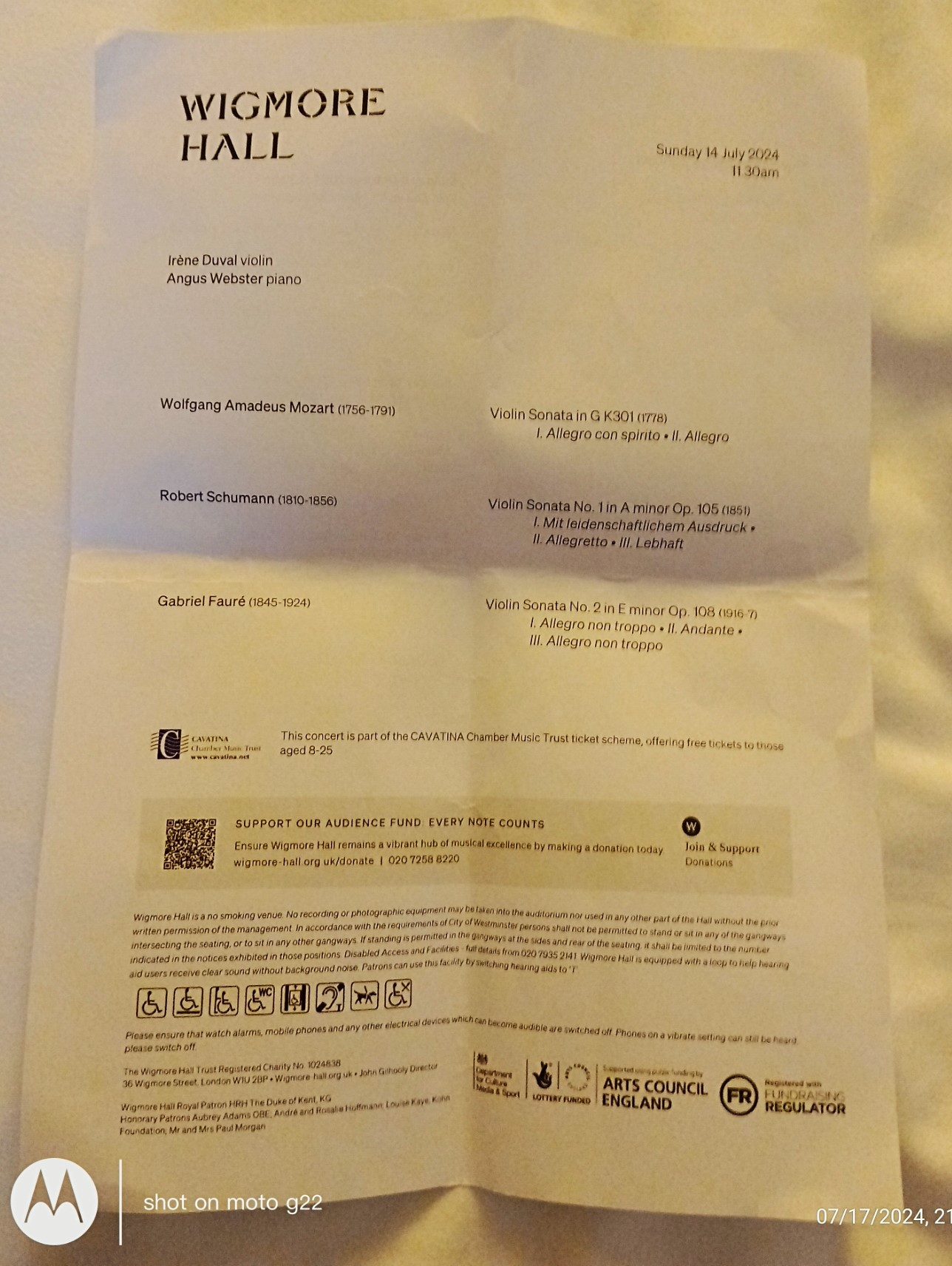 Sunday morning at a Wigmore Hall Recital is an important part of our London itinerary. It recalls the New Year Eve events that we attended there when we lived in London. Afterwards we used to go to Peral liang for dinner before watching the fireworks from our apartment (an occasional spark here and there only to be seen, too far from Hyde Park, alas).