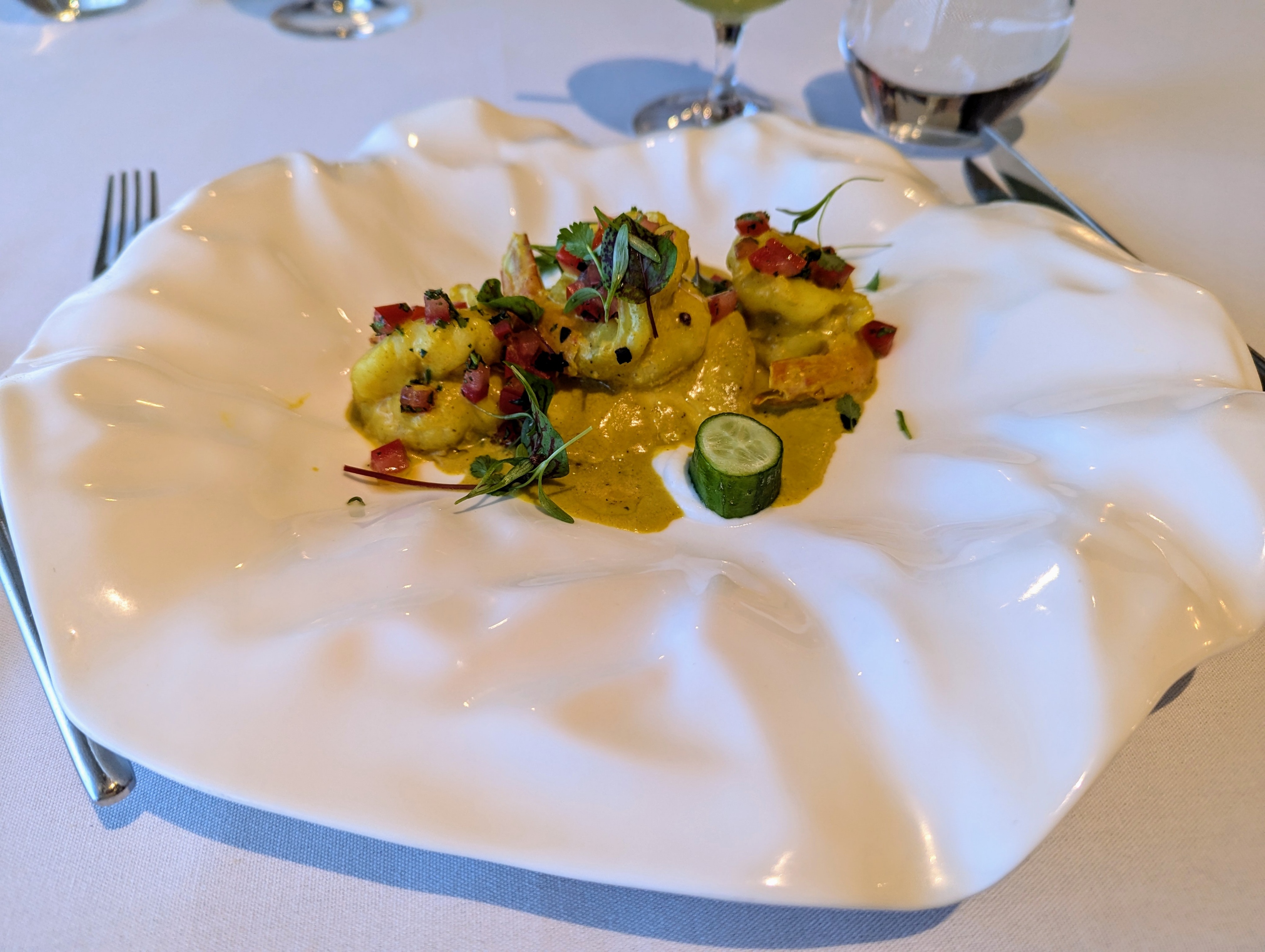 Blackfire is a great ‘go to’ restaurant. I rarely stay far from my favourites – from the tapas menu, the crab filled red peppers, and from the entrees, the king prawns with croutons. And on this occasion that is what I ordered. However, the cheese pastries are also delicious, and the fish main is an excellent dish. For a quick, delicious meal in comfortable and friendly surroundings Blackfire provides an excellent option.