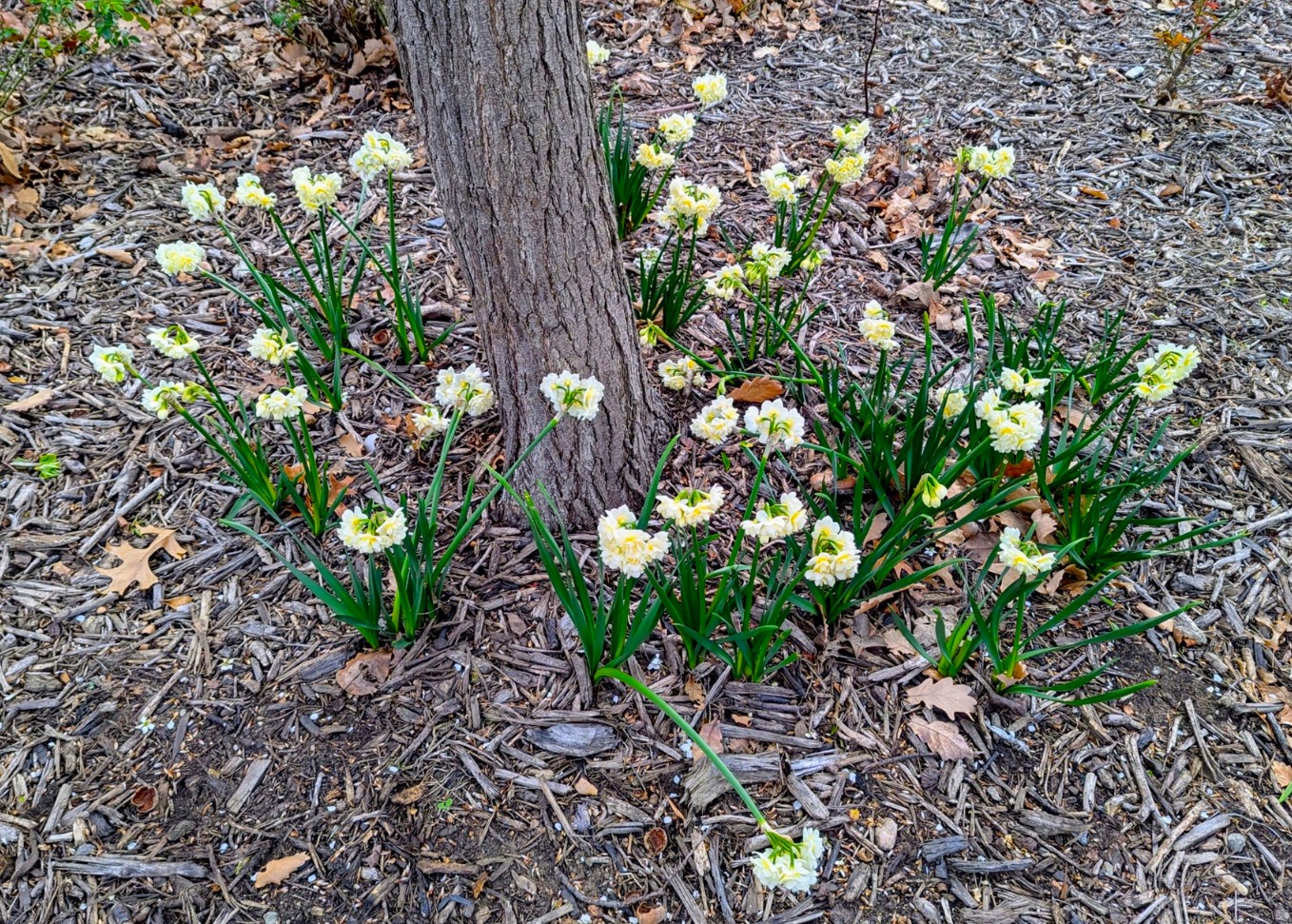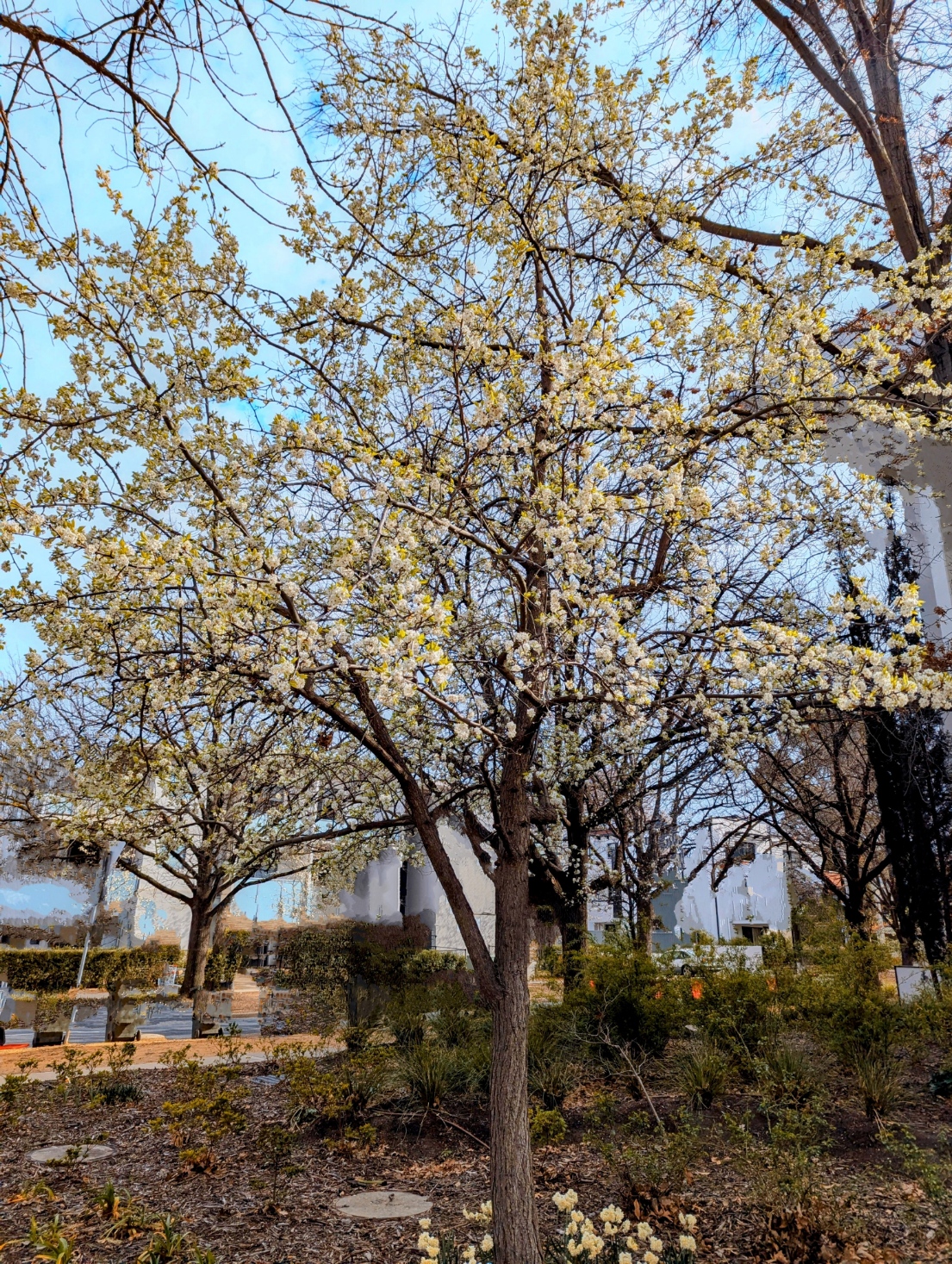 Blossoms are already drifting off some trees, although others are still beginning to blossom. A wonderful time of year.