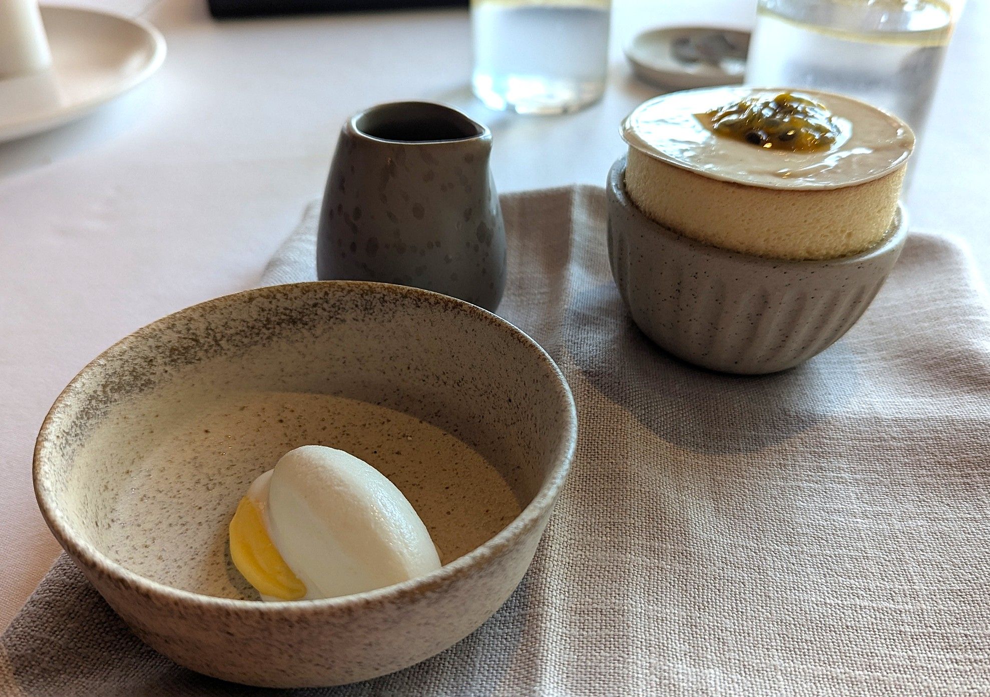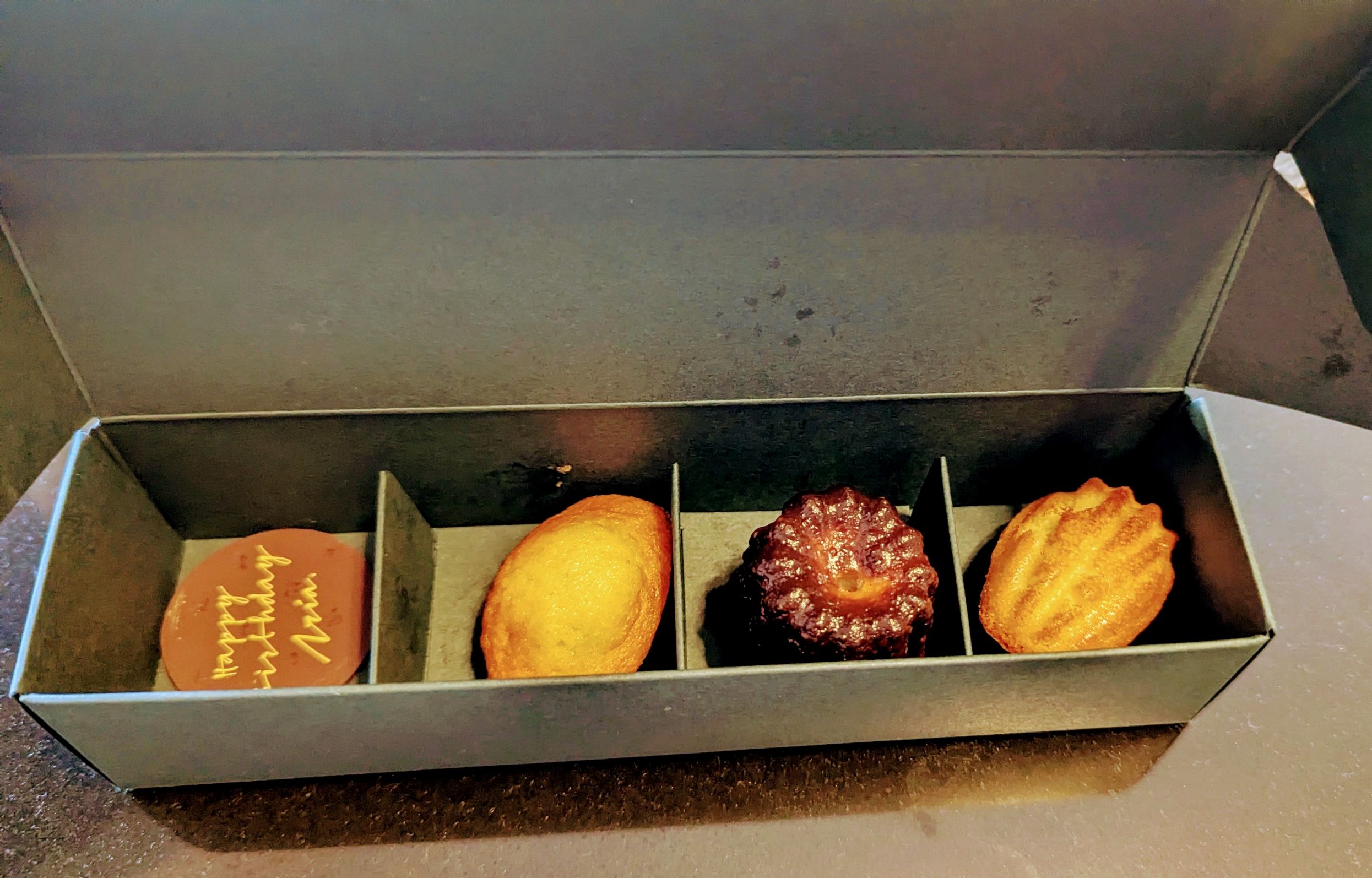 The tables are set well apart, feature white linen, comfortable seats and beautiful views. The staff are excellent, know the menu, and are friendly and efficient. I received a birthday cake with candle – and extra friands in an attractive box to take home.