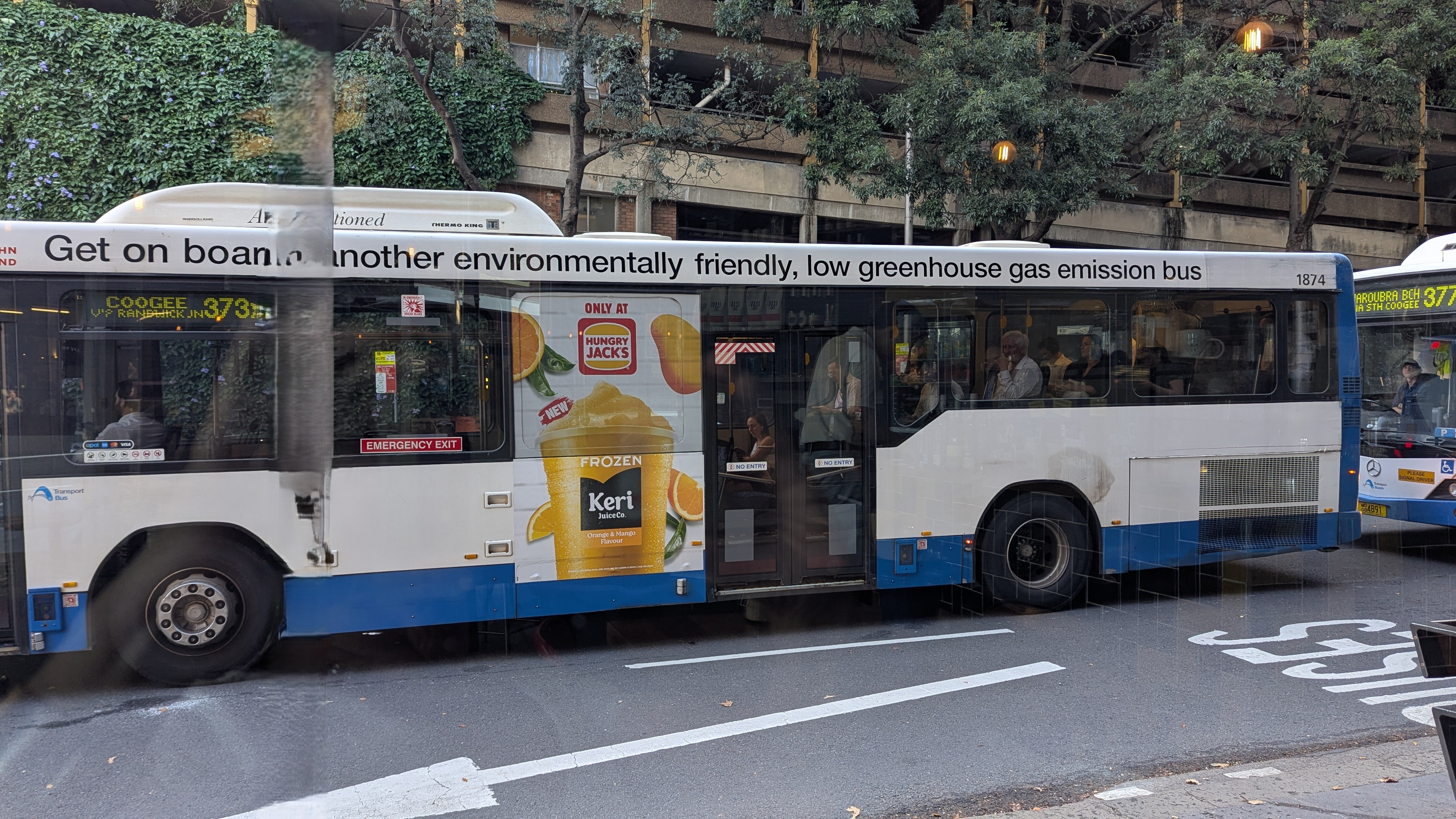 Seeing this bus going past was quite reminiscent of being in London when a red bus also displaying this environmentally responsible sign was driven through Paddington.