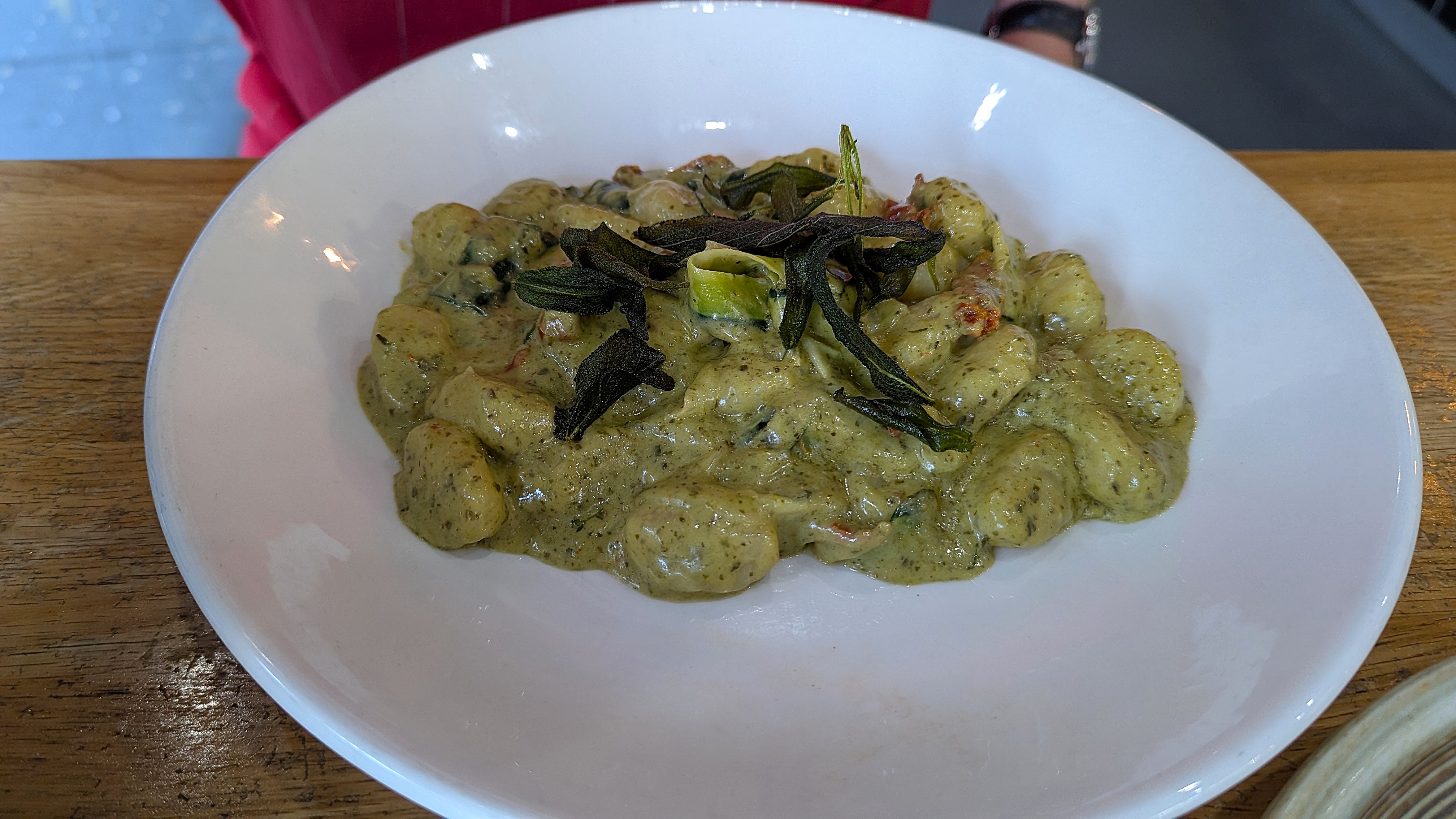 Having enjoyed an exciting breakfast (sweeps of delicious sauces and sprinkles of seeds surrounding an interesting array of breakfast items) on an earlier trip, we decided upon plainer fare as a quick evening meal on our first night in Sydney. The fish was delicious and the chips too tempting. The gnocchi was a far fancier dish of delicious tastes, and the accompanying broccolini was the star of the meal. The staff here are friendly, and the service is always good. This is a go to place to eat – a good menu, nice meals, close to the hotel, and friendly.