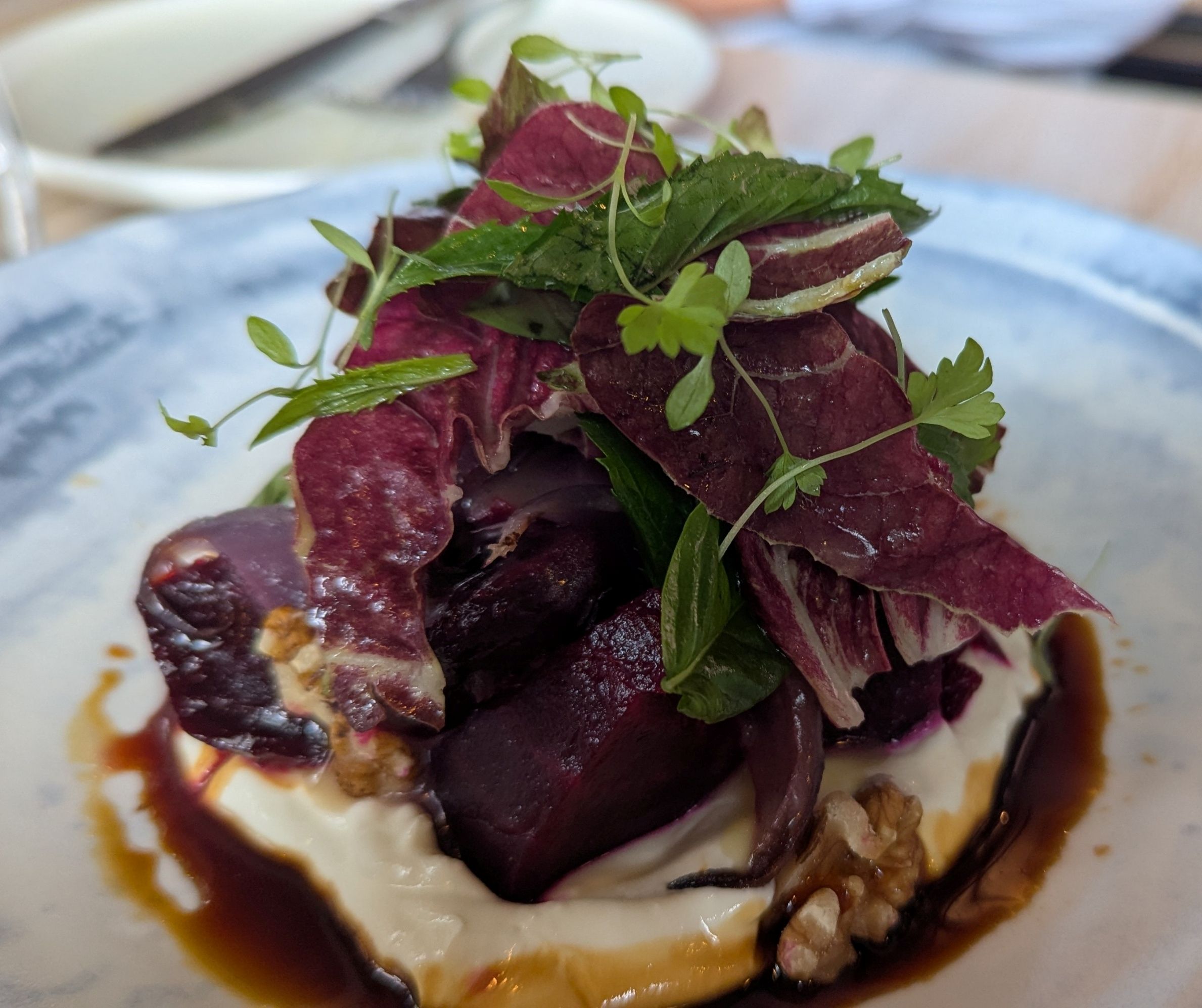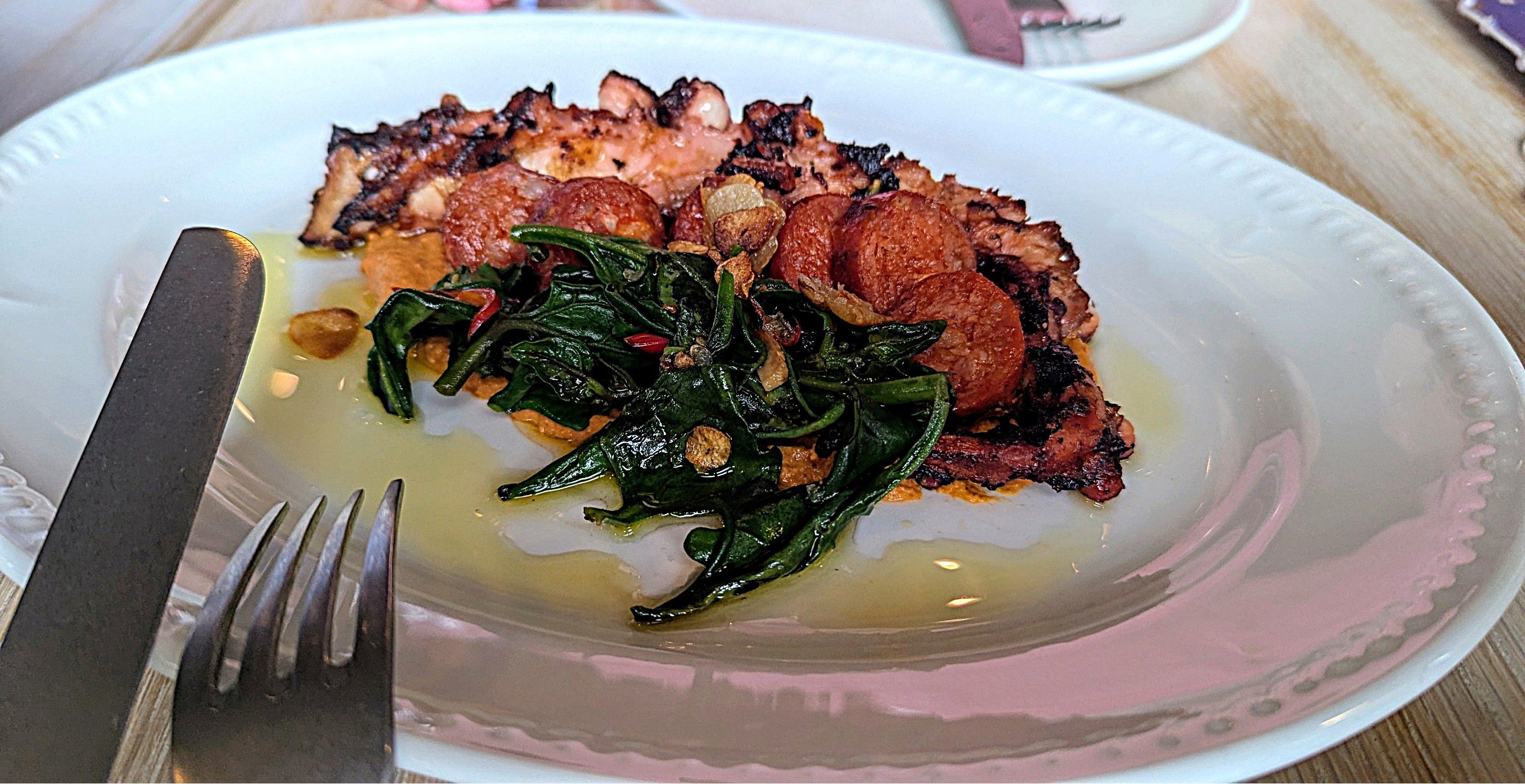 This is a delightful restaurant, with shared plates, small and large. Three small, the octopus, beetroot salad and eggplant and three large, the lamb ribs, chicken and cauliflower were just right for four of us. Coffees were very pleasant indeed and ended a lovely meal and excellent discussions.
