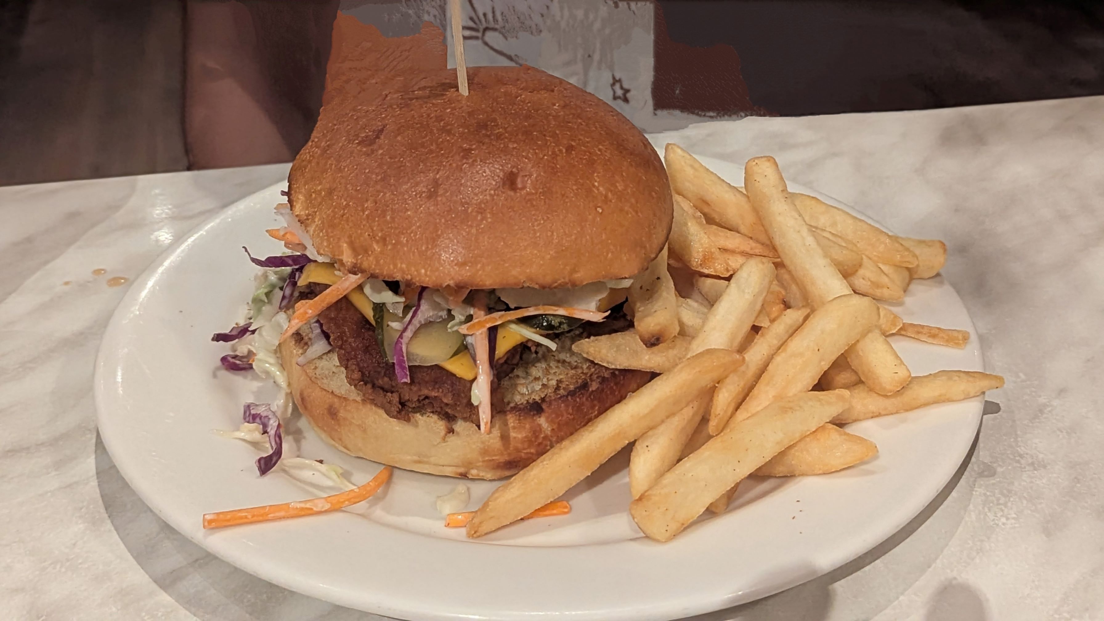 Dome is always worth a visit, and on this occasion, Dome Midland provided us with some very generous and flavoursome meals. I had the falafel salad – a good choice, with delicious falafel with crisp crusts and a soft inside. The burgers were enormous, with a generous serve of excellent chips. The bruschetta was a small meal but enhanced with a taco from someone else’s prawn taco order.