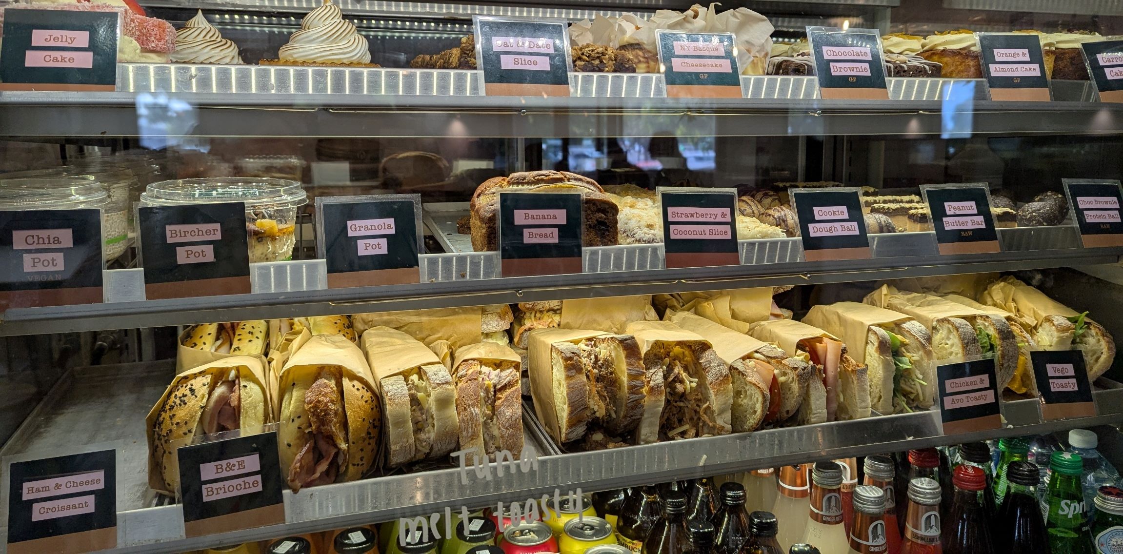 Amongst the many coffee places open on Good Friday, Spencer Street Bakehouse offered indoor and outdoor seating, and provided good coffees, and a generous well-cooked breakfast from and extensive menu..