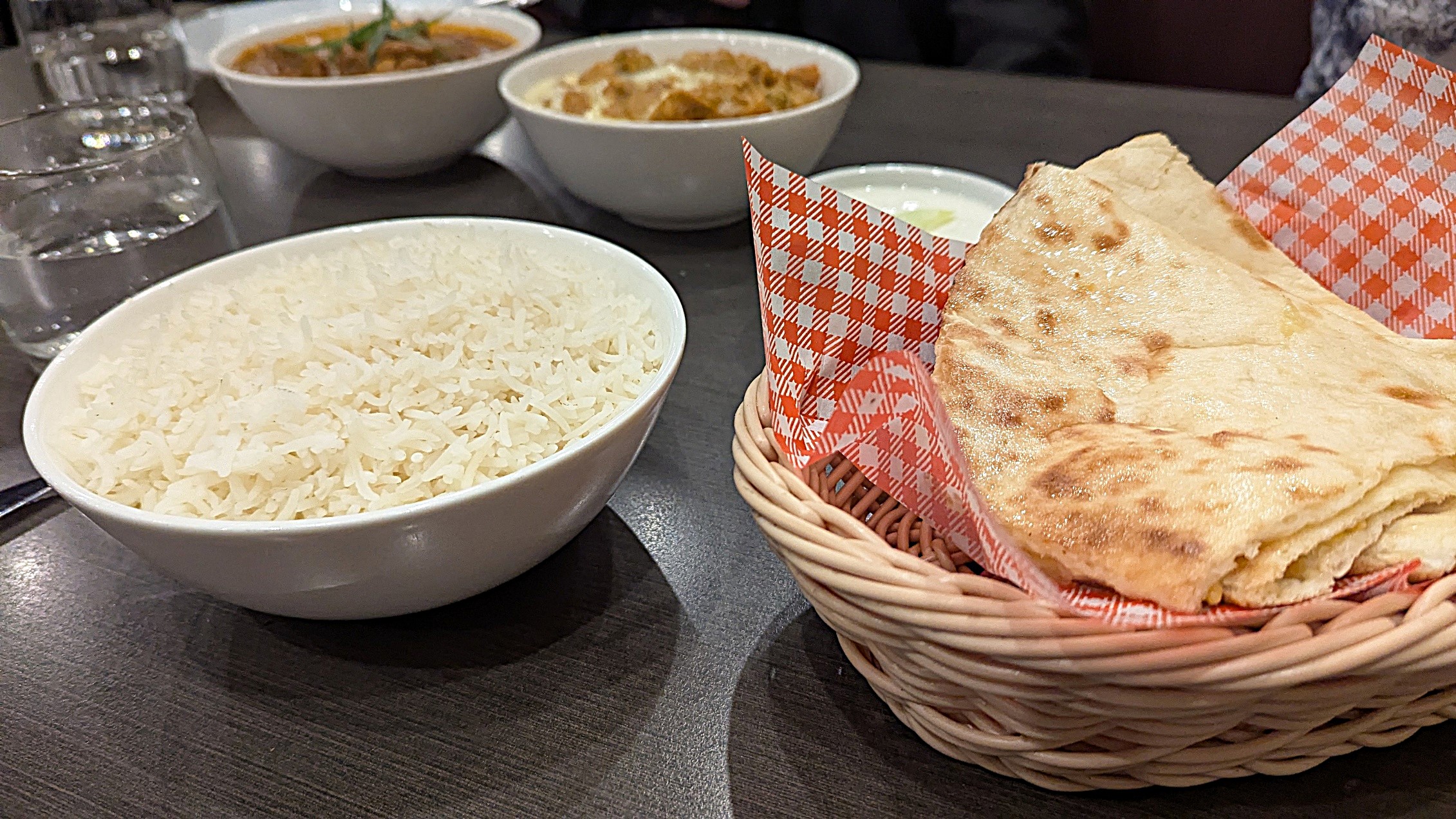 Hullo Indian is a pleasant restaurant which relies on the flavour and quality of its food – and rightly so. Our dishes were excellent, the butter chicken with its distinctive flavour – generous succulent portions of chicken combined with a delicious sauce was my favourite. The vegetable curry was also a winner, and the beef curry was returned to again and again. The samosas to begin were large and served with tamarind sauce and greens – another success. Staff were pleasant and the chef, as well as his culinary skills, was friendly .