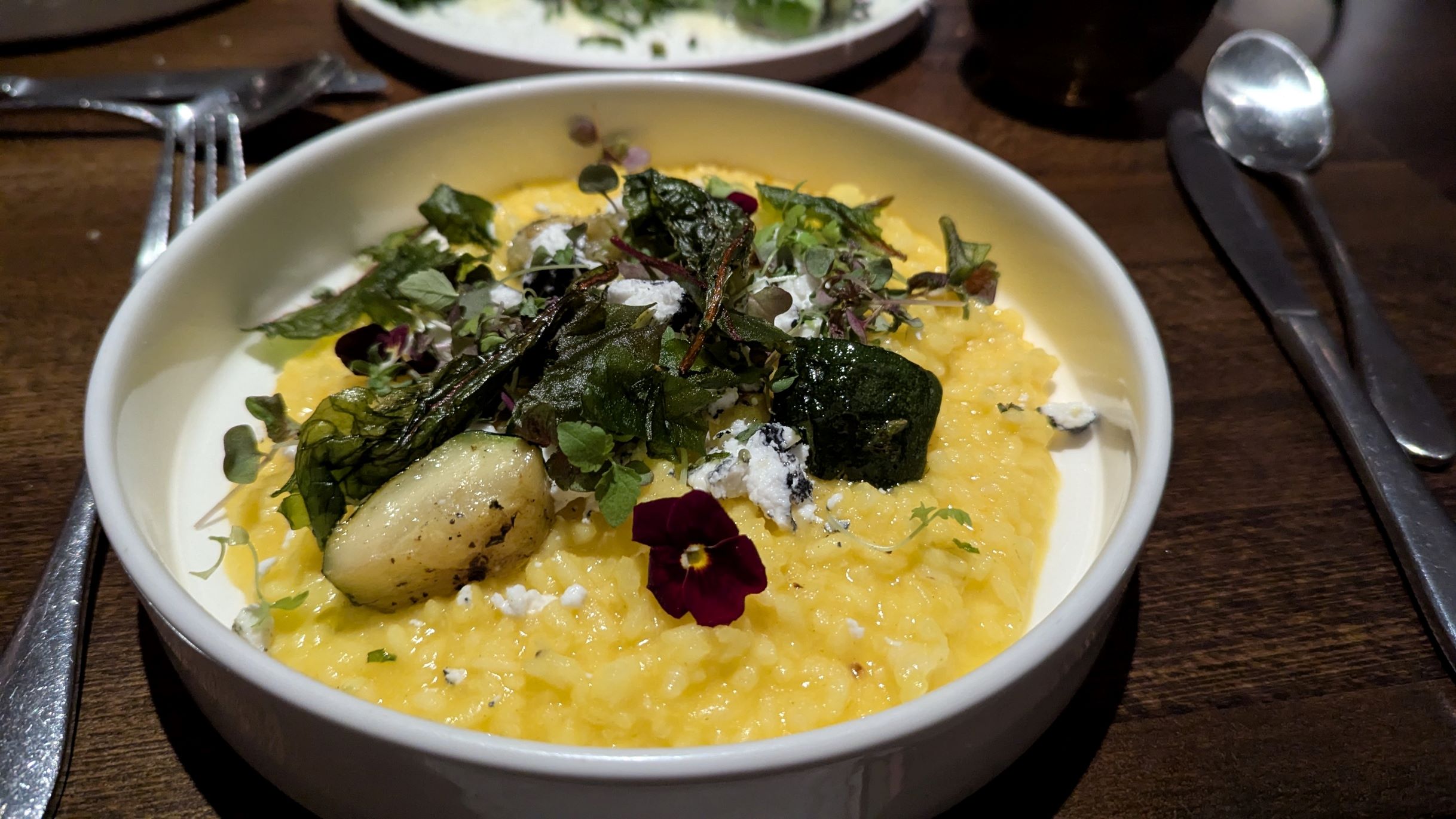 Last time we were here, we ate with friends. This time, we chose a little more wisely from the small dishes. Service is friendly, and the food very good, although I thought that the risotto could have been more flavoursome. It was enhanced by the goats cheese and zucchini on top, but the rice portion was rather bland. The standout was the pumpkin. The prawns, and the stracciatella dishes with which we began were also excellent.