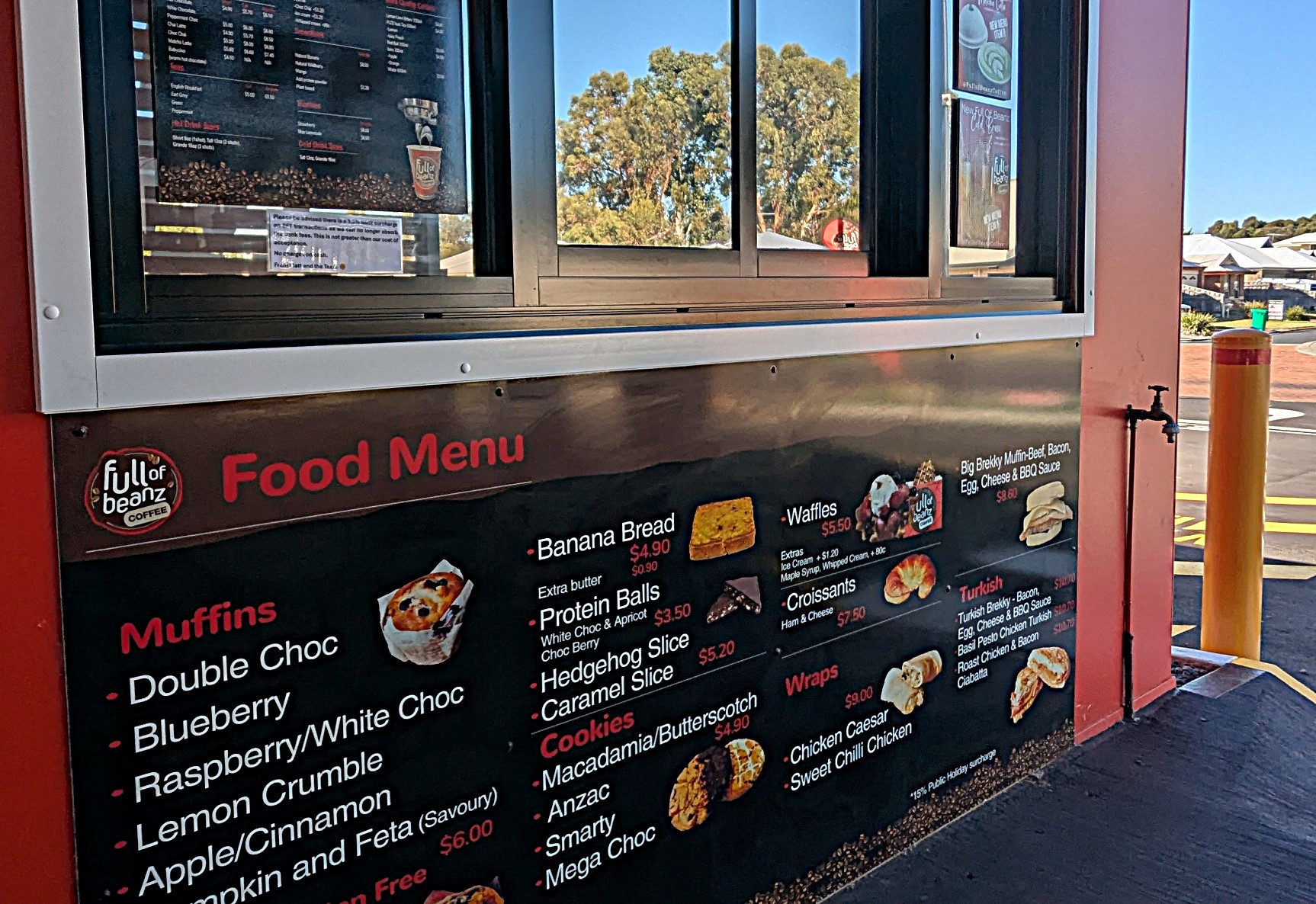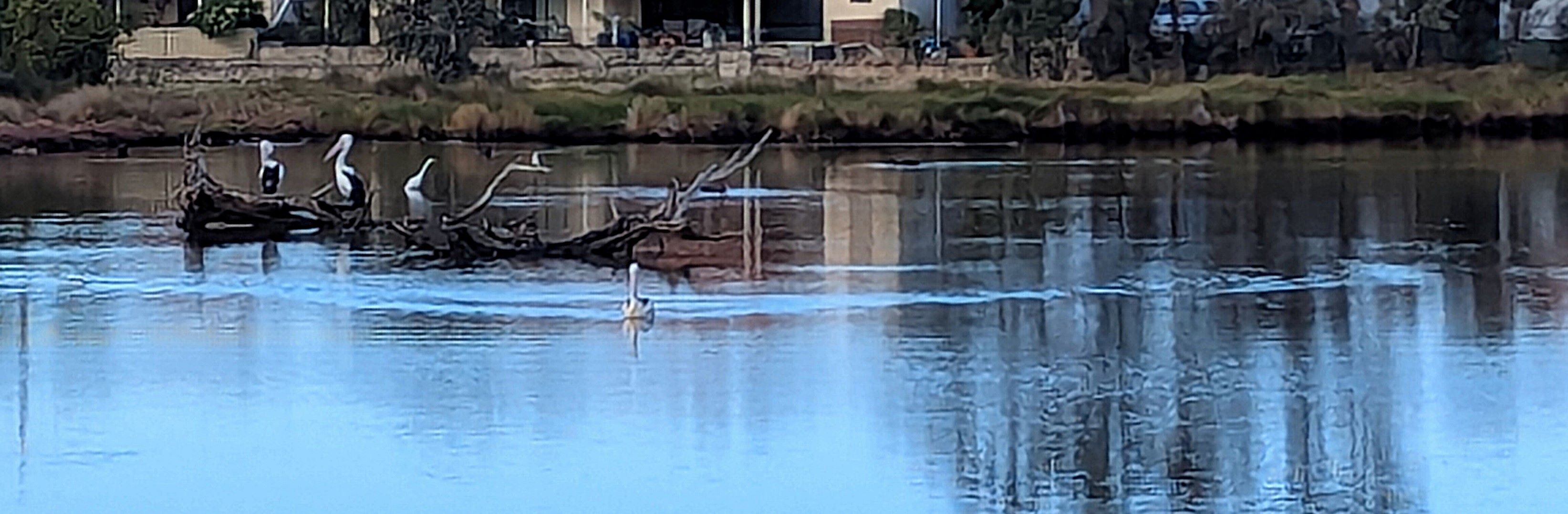 This is a drive through coffee place with a good menu, and lovely staff. The coffees were great, and the savoury muffin very filling and pleasant. Even better, the walk was similar to our regular Canberra walk, as far as distance goes. Alas, our Canberra walk does not include lakes and pelicans.