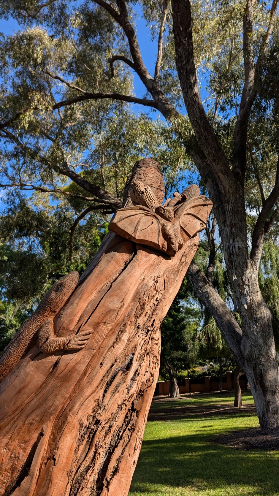 On the way to the gallery, I passed the old James Street Technical School where I was an art student, and consumer of jam donuts. The building is being refurbished, but the donuts are still there. Uneaten by me on this occasion, although fondly remembered together with my wonderful donut eating companion. I went to the Kimberly virtual reality exhibition which was uplifting and amazing. No photographs, of course, but none would provide the thrill (and shock as I teetered on cliffs) of the exhibition. Heathcote was less thrilling, despite the monument to Heath Ledger, but certainly more comfortable! The exhibition space was closed but some magnificent views and woodwork on dead trees made up for this.