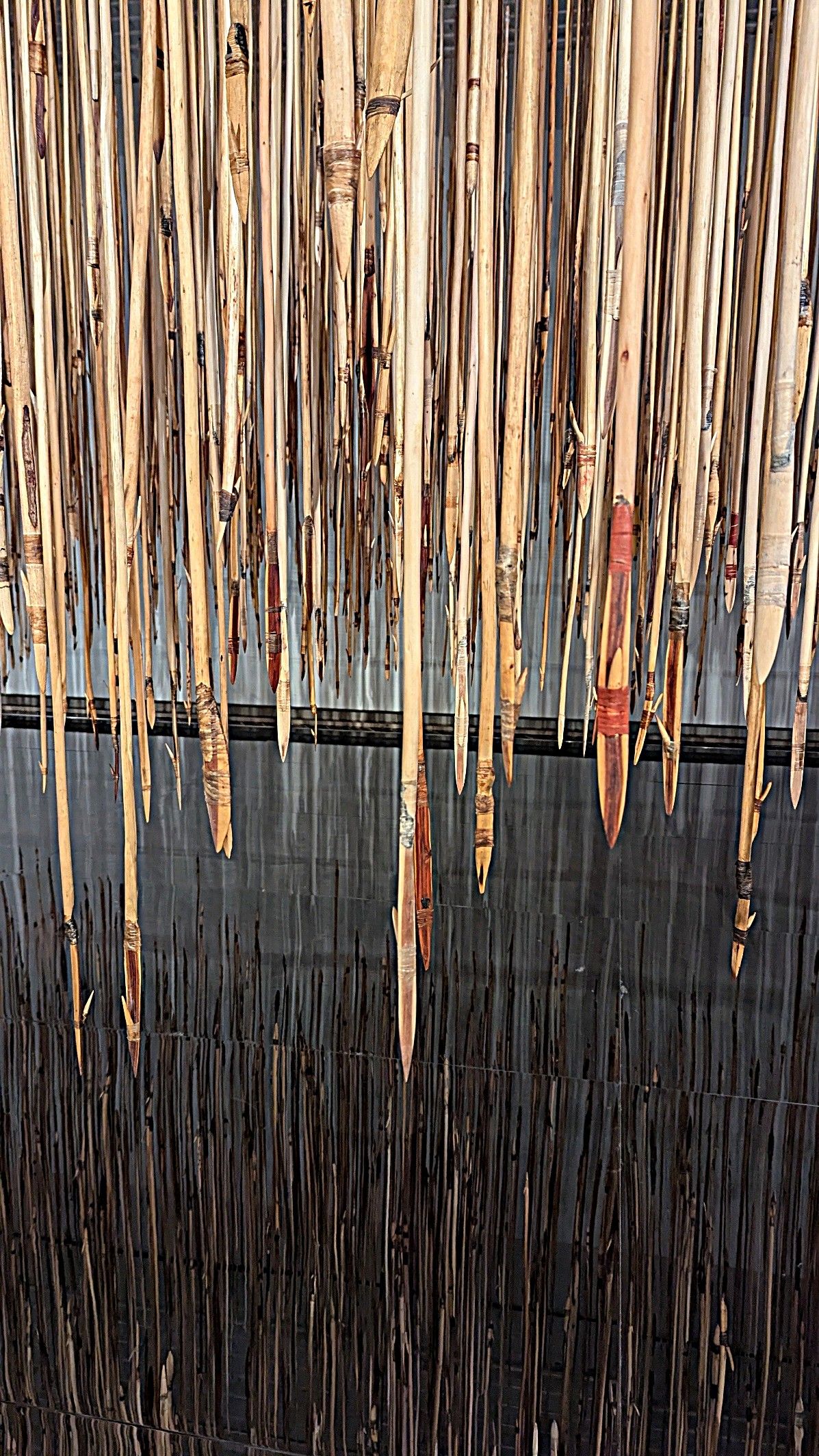The Kulata Tjuta Project was one of these. The cultural maintenance project was established in 2010 and shares the skills of carving and making the punu kulata (wooden spear) across generations. A small group of Tjilpi (senior Anangu men) from Tjala Arts in Amata, South Australia, sought to ensure that traditional knowledge and cultural connections were nourished and preserved. The group has expanded to 100 from across the Anangu Pitjantjara Yankunytjatjara Lands and is now a monumental collaborative project which joins the voices of senior and younger artists to speak of cultural resilience, continuity, and identity. *
