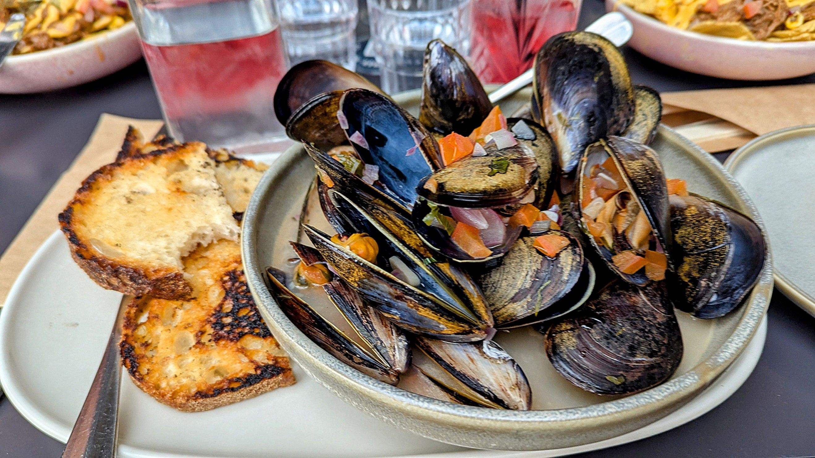 Money Penny is a pleasant restaurant on the foreshore, serving delicious meals such as those we chose – humous and beetroot dip with sour dough, crispy cauliflower, and fish tacos.