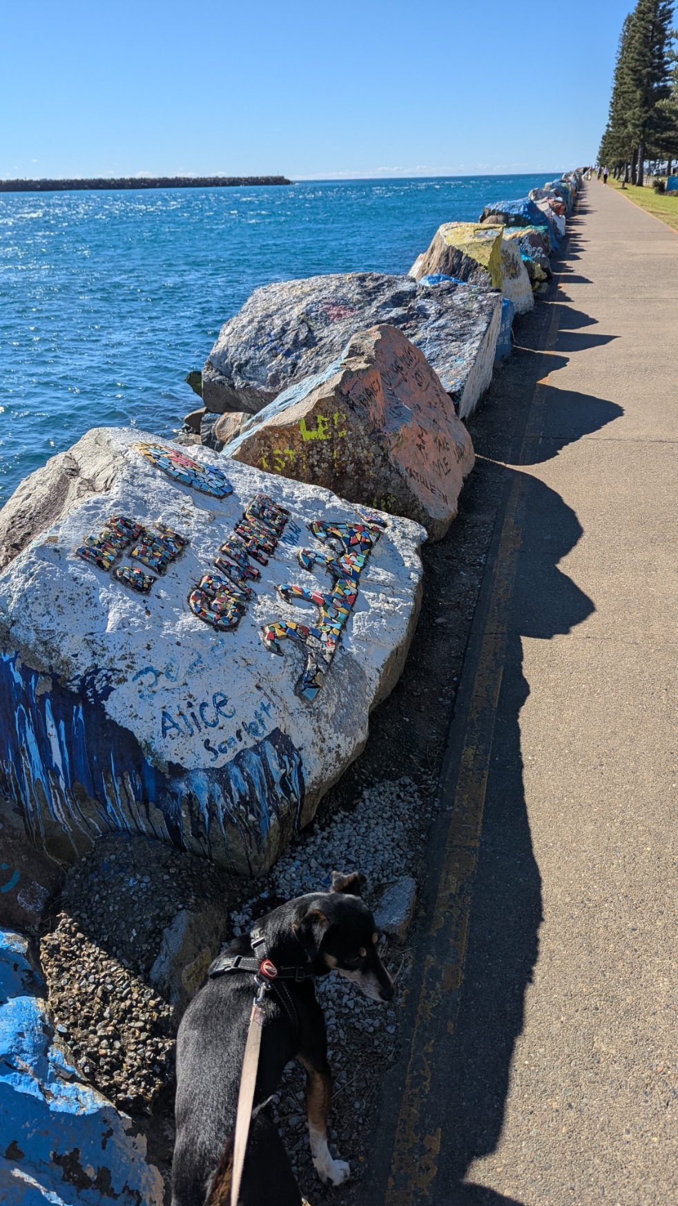Getting away from the cold in Canberra seemed a good idea, and it certainly has been a change. However, the cold of Mittagong is unremitting and the wind in Newcastle and Port Macquarie is a negative. On the other hand, eating in the sunshine on the foreshore in Newcastle was excellent, and a reminder of the inspirational urban development plans implemented by Brian Howe in the Keating Government. Port Macquarie is a lovely spot, with water to walk beside restaurants and good coffee, and most importantly, a wonderful stay in dog friendly Mercure Hotel. We have a large room with a small courtyard, and bedding and dishes for our dog. The restaurant provides a partly enclosed area where Leah is welcome. Our room facilities, although of second order importance, are a comfortable bed, lots of towels, a great shower, coffee and tea (real milk provided each day) and a two person desk. The abundance of power points, some next to the bed is an additional benefit. The check in was friendly, and staff are welcoming to Leah. A fabulous find.