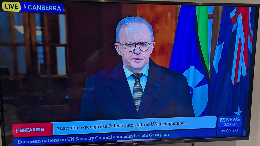 The news midweek that Israeli Prime Minister Benjamin Netanyahu was planning to extend military operations for a complete takeover of the Gaza Strip was, in Wong’s view, even more reason for Australia and the international community to use recognition of Palestinian statehood to create “a pathway to a two-state solution”.