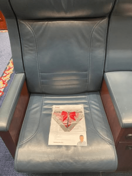 MP Dave Kelly MP placed 60 pairs of red knickers for Gynaecological health awareness day today on politicians’ chairs. This was placed on the Premier Roger Cook’s chair today. Hope he liked the surprise. X Kath Mazzella OAM