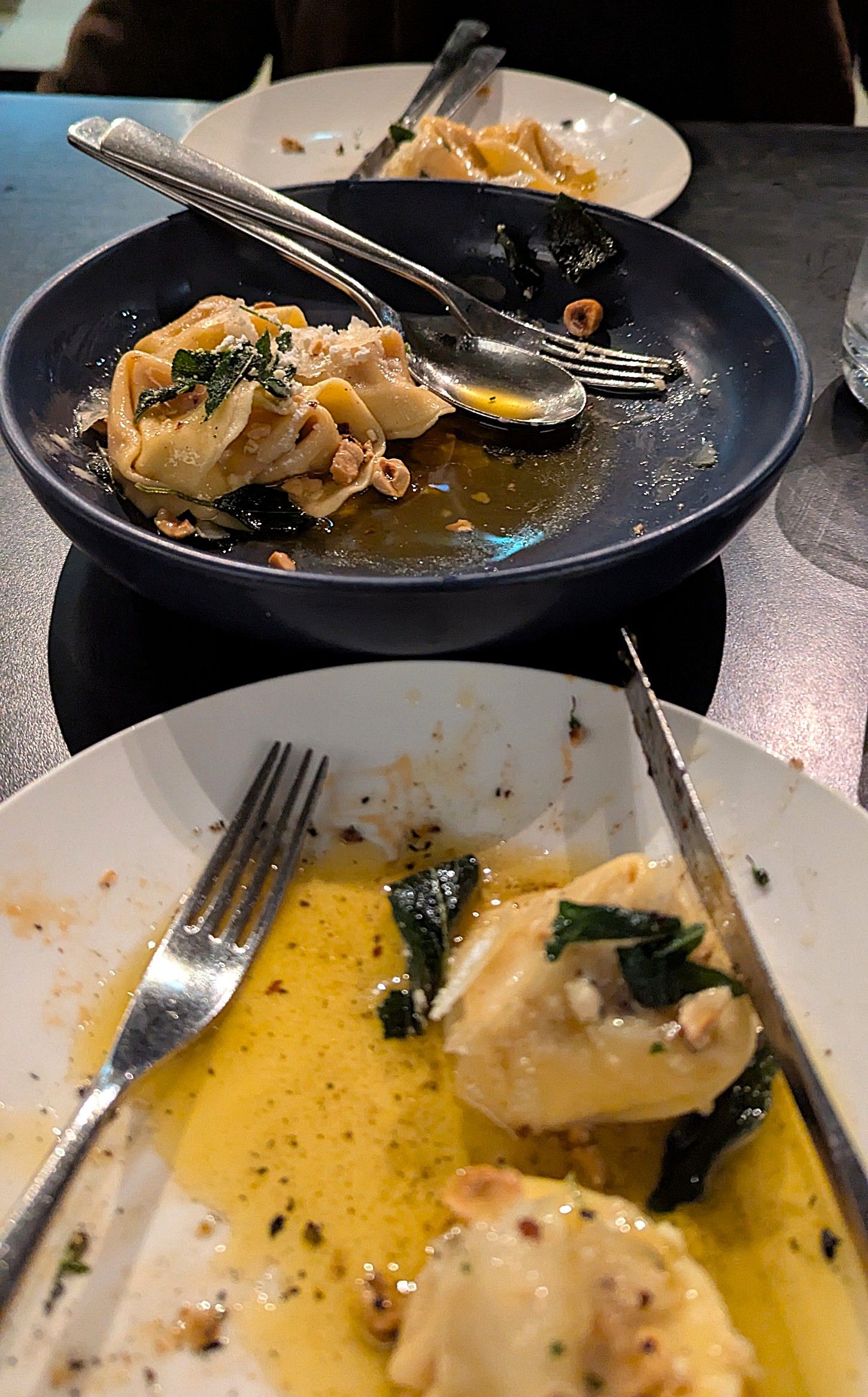 I t seems so long since I ate at 86 – far too long, and I shall certainly not leave so much time before my next visit. I forgot to photograph the delicious, charred corn with togarashi cream and parmesan, but managed to photograph the remainder of the meal before it was devoured. It was a favourite menu – fragrant crispy eggplant with sichuan chilli caramel, pumpkin tortellini with burnt butter and sage sauce, and broccolini with hazel nuts. And, the delightful orange blossom cocktail was back.