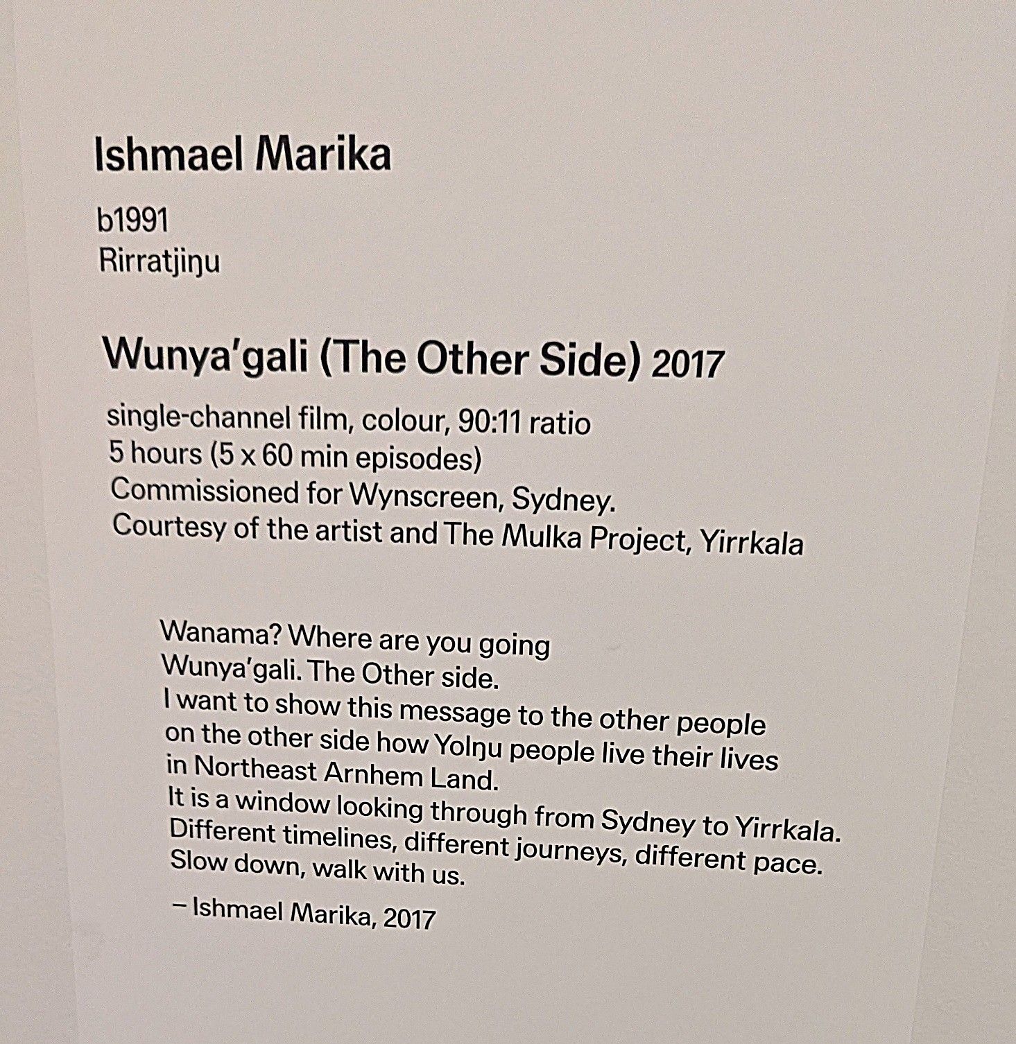 The exhibition is presented in partnership with the Indigenous art centre in Yirrkala, Buku-Larrŋgay Mulka.’