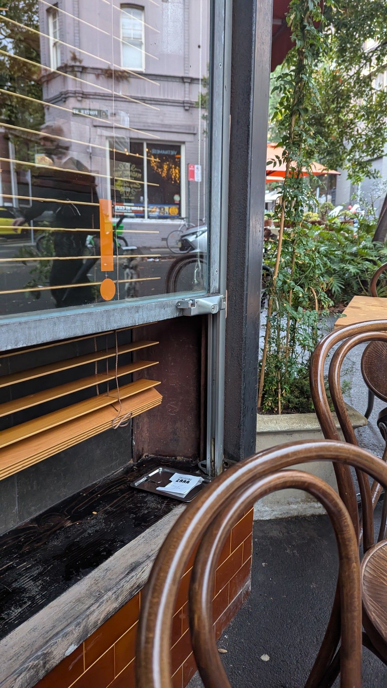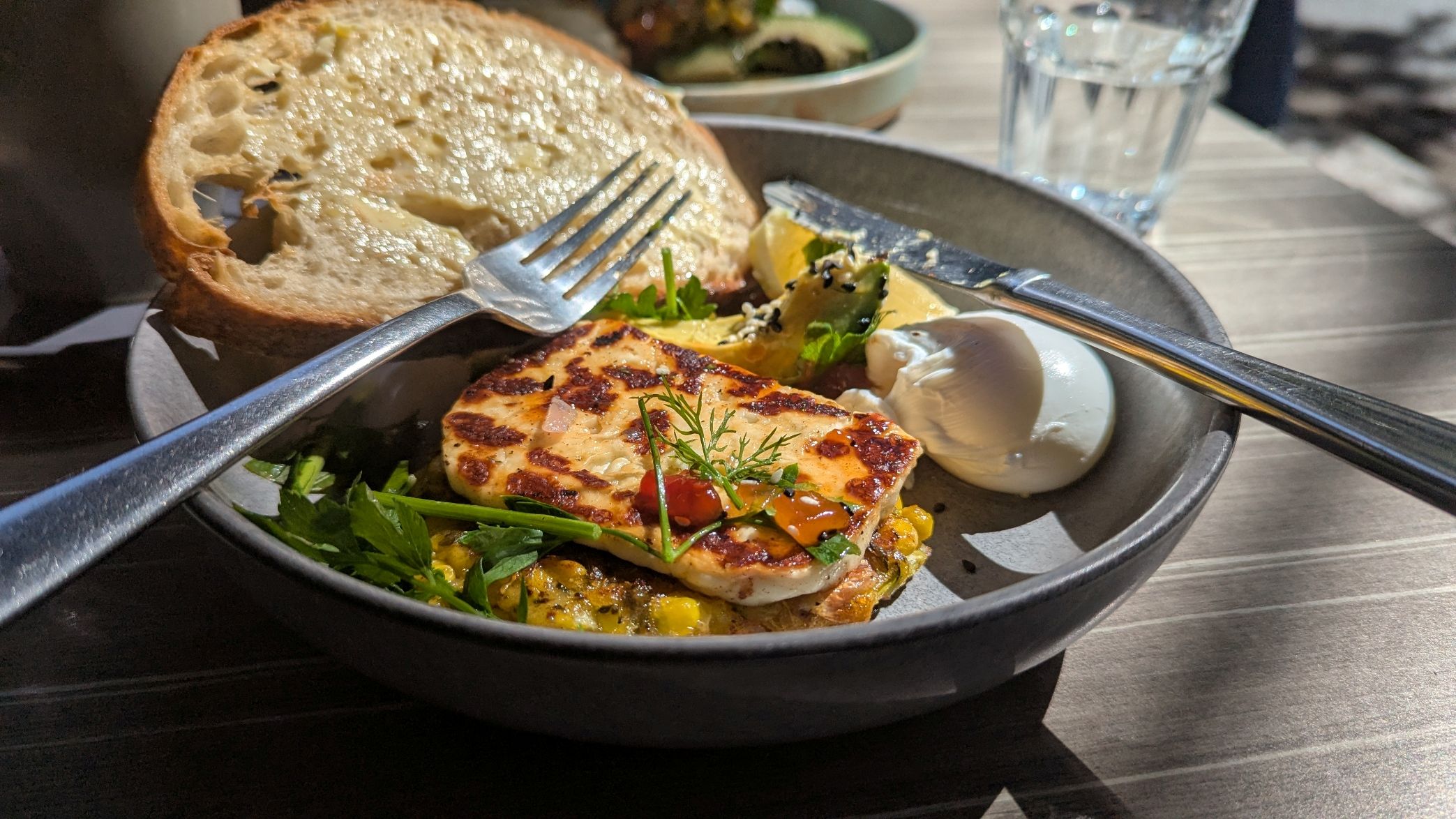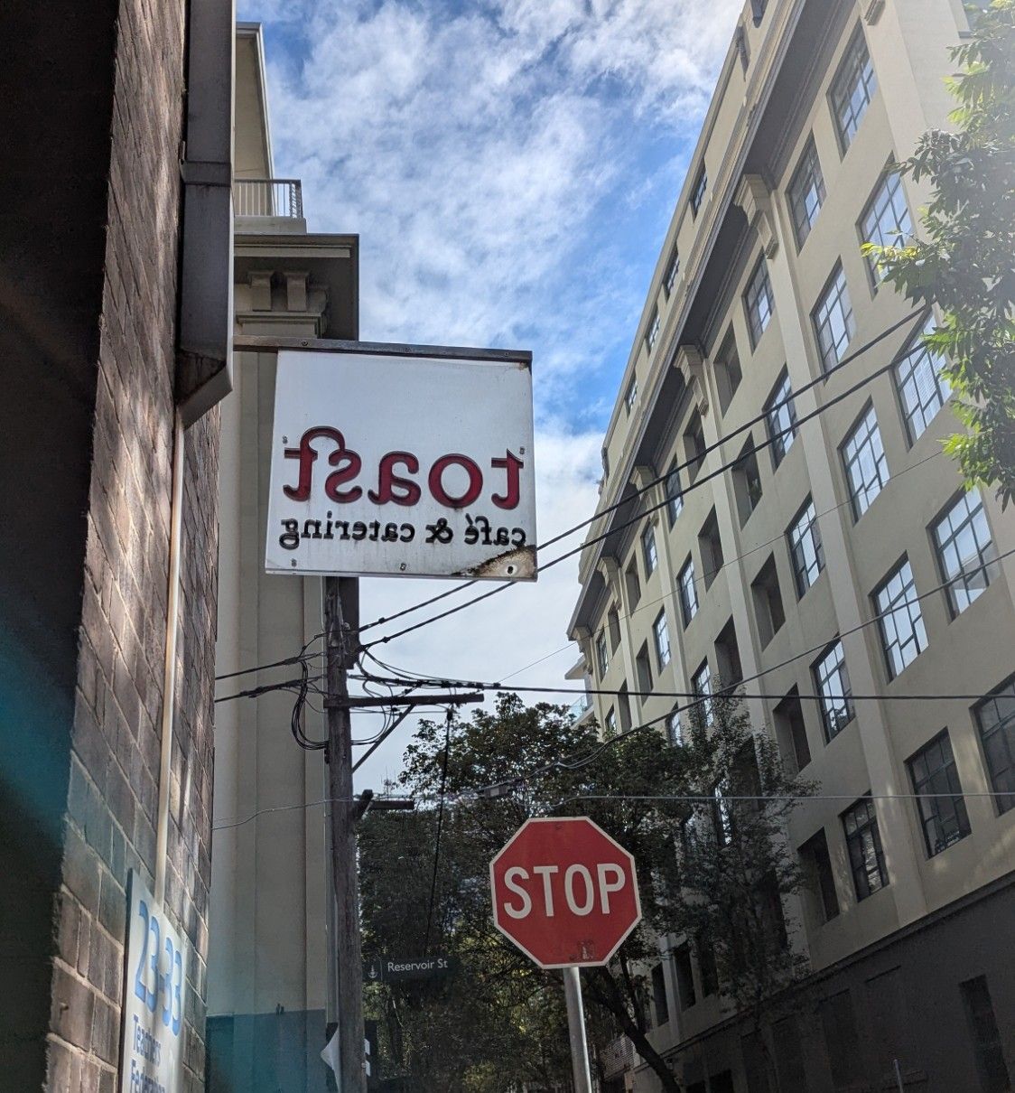 Toast is an excellent breakfast/brunch/lunch venue with indoor and outdoor seating. It was sunny, so no flooded footpath as was the case on Friday night. The menu is excellent with so many choices there, and in the glass display case inside. The service is friendly and very efficient. We chose two dishes and shared them. Unfortunately, the presentation is mine after sharing, instead of the elegant dishes served originally. The sharing worked well – it was a delicious late breakfast.