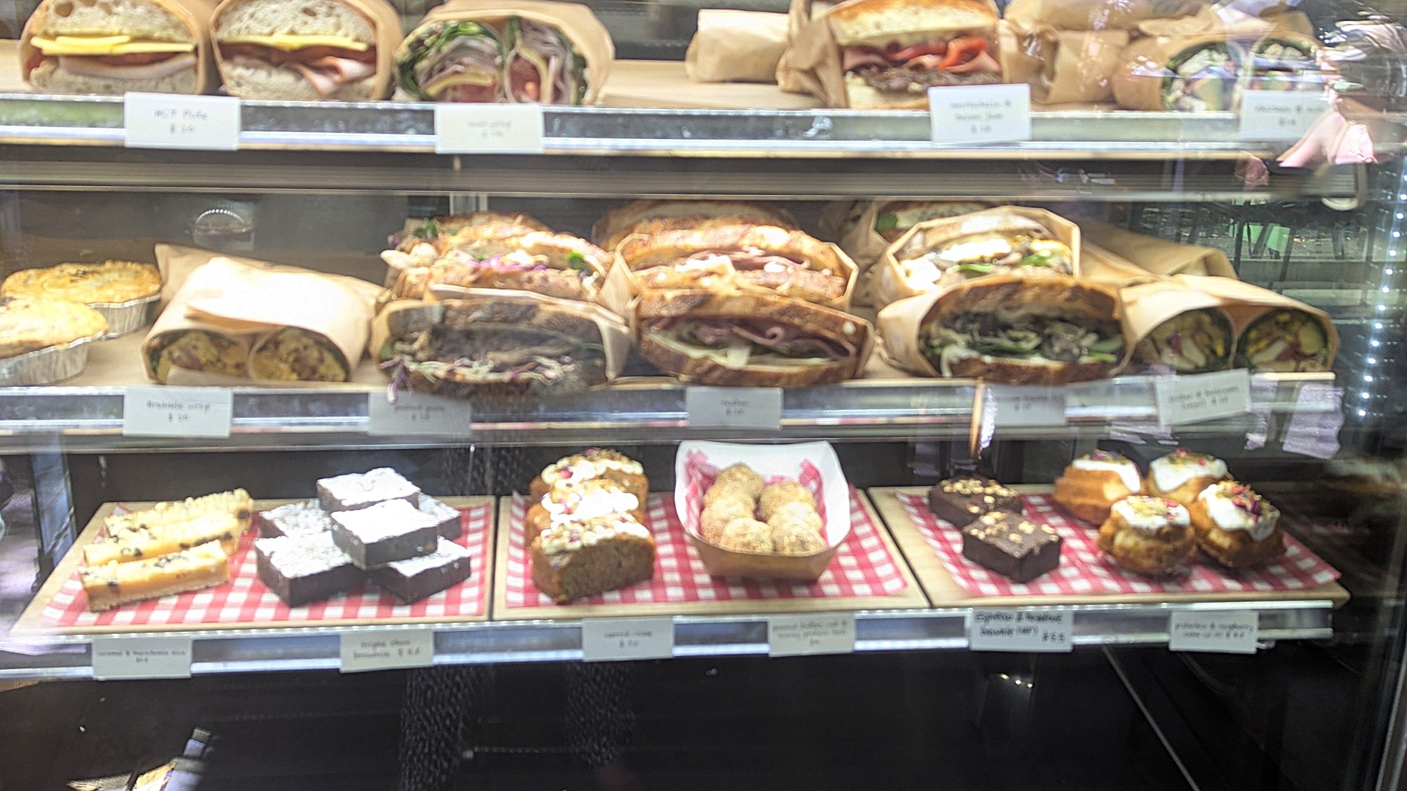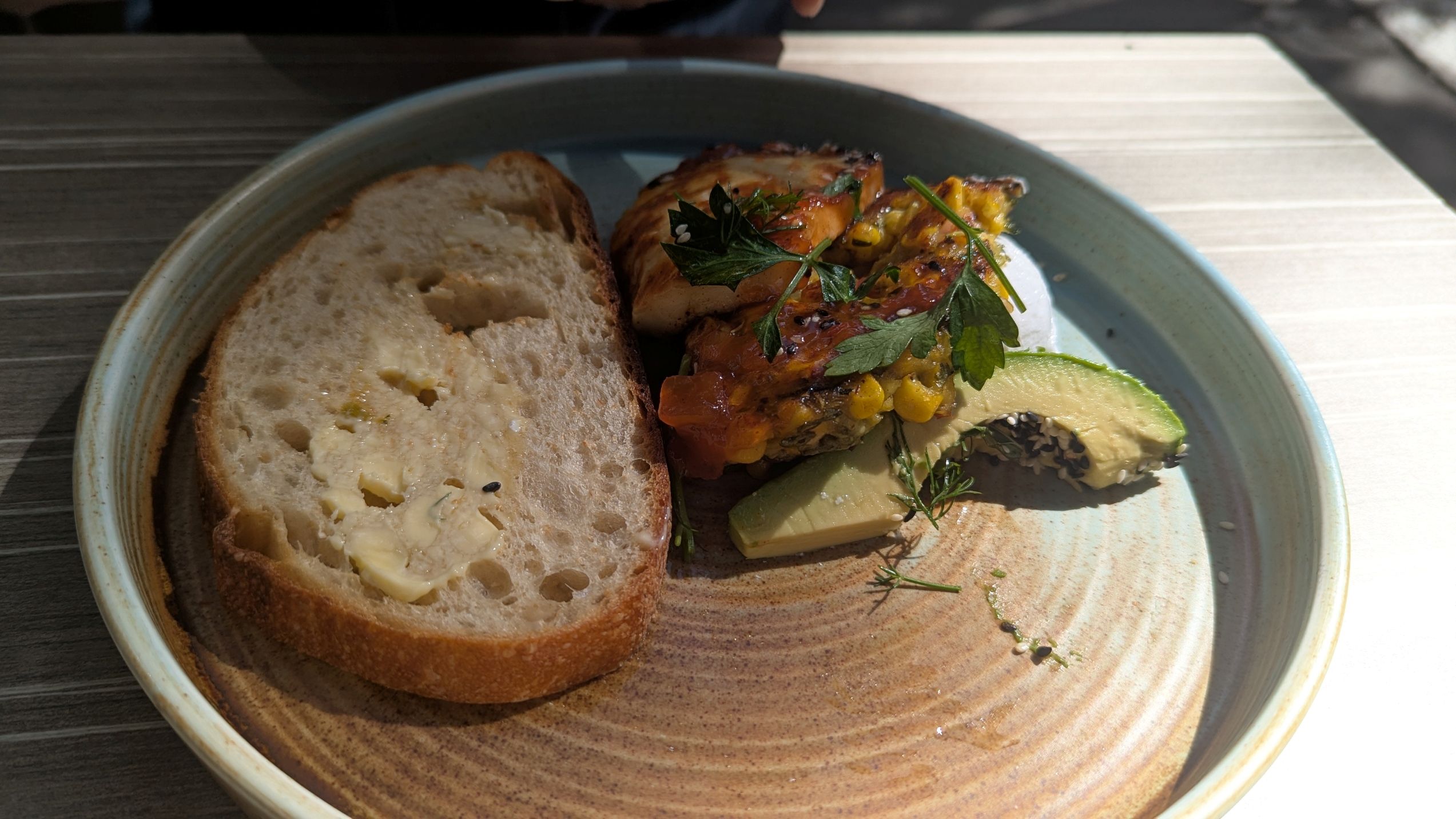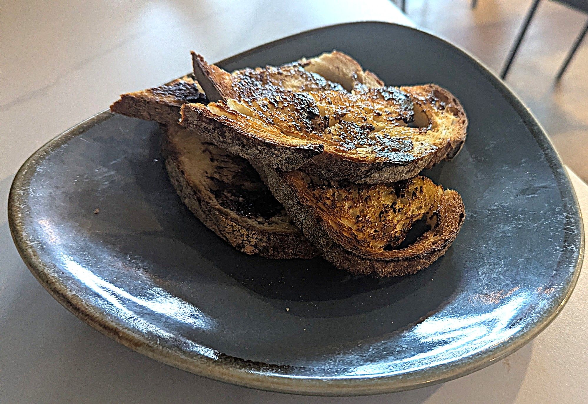 Toast is an excellent breakfast/brunch/lunch venue with indoor and outdoor seating. It was sunny, so no flooded footpath as was the case on Friday night. The menu is excellent with so many choices there, and in the glass display case inside. The service is friendly and very efficient. We chose two dishes and shared them. Unfortunately, the presentation is mine after sharing, instead of the elegant dishes served originally. The sharing worked well – it was a delicious late breakfast.