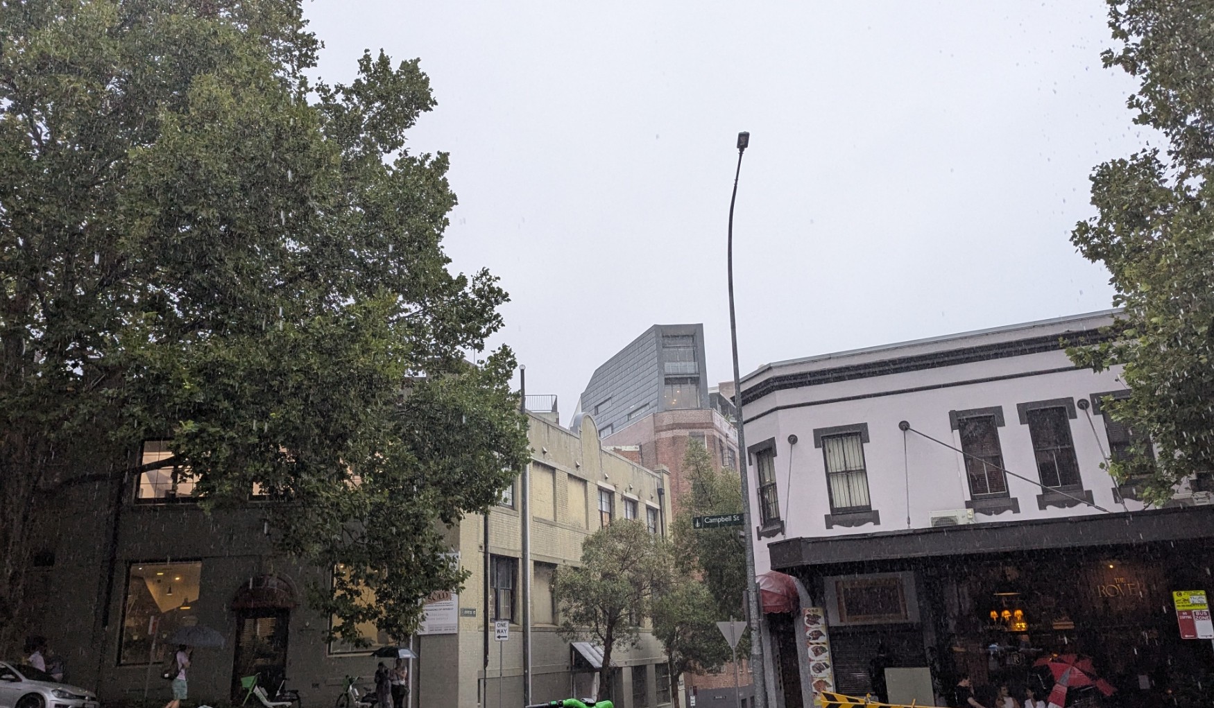 Cindy Lou enjoys food and torrents of rain in Sydney