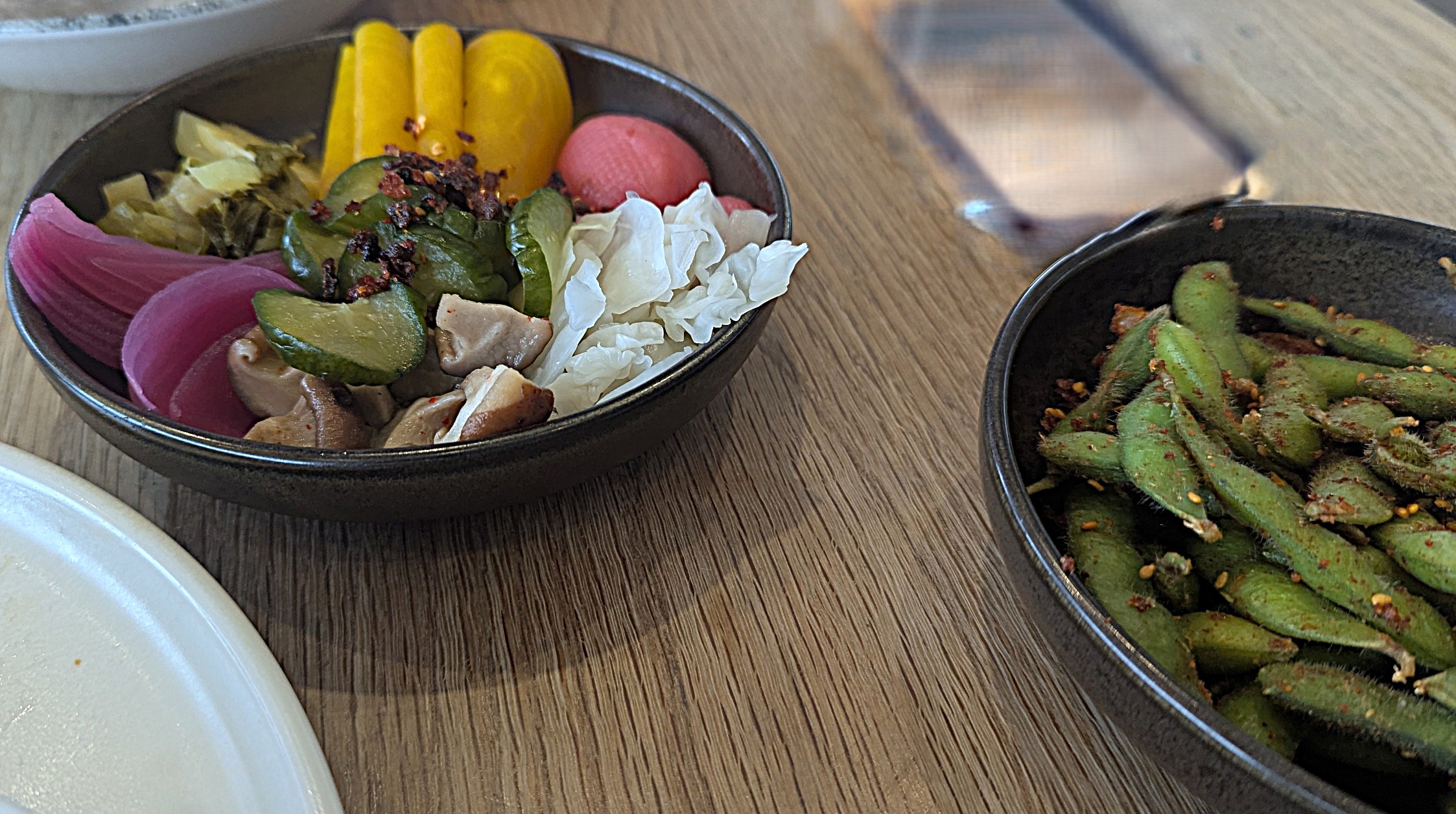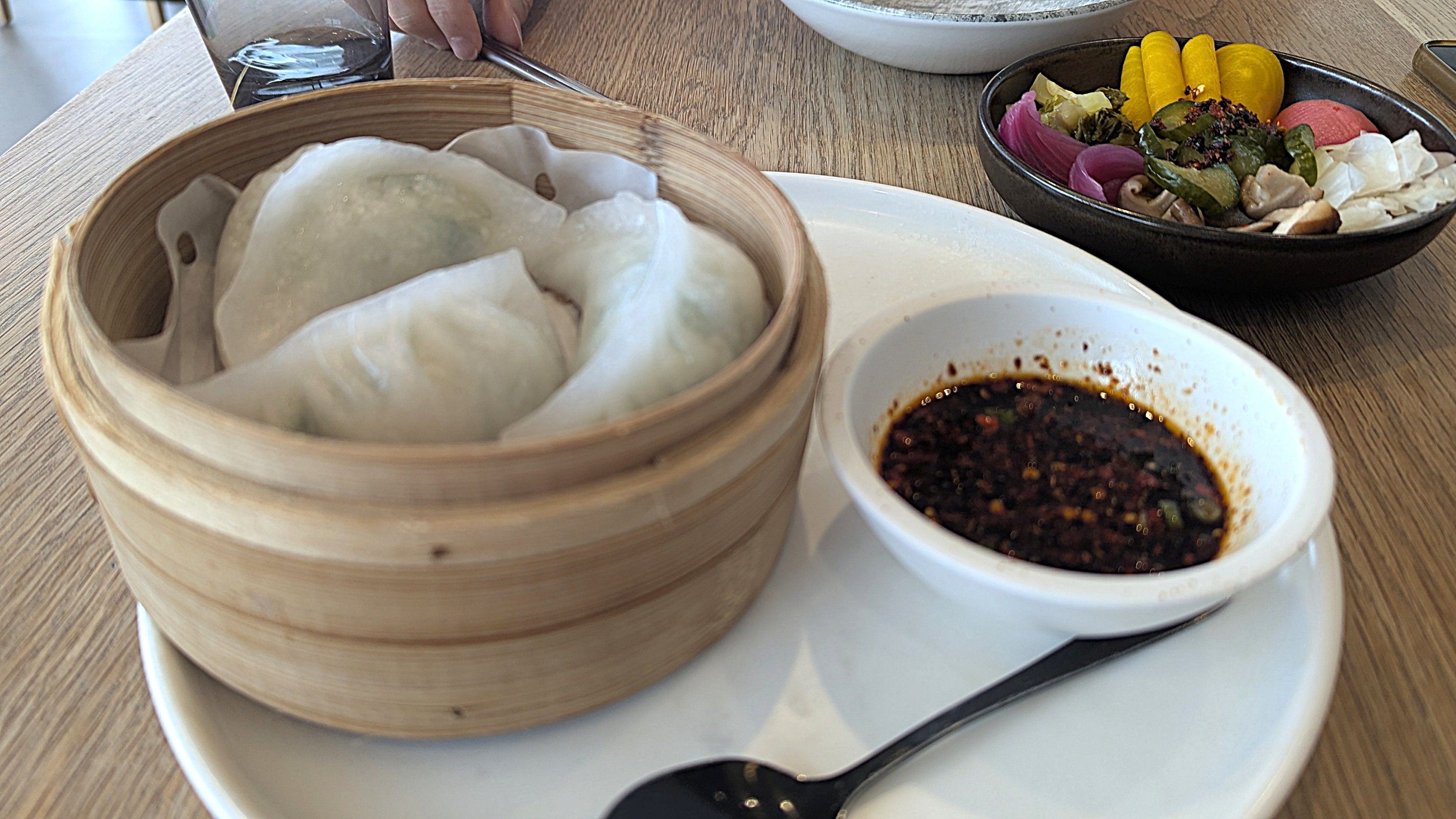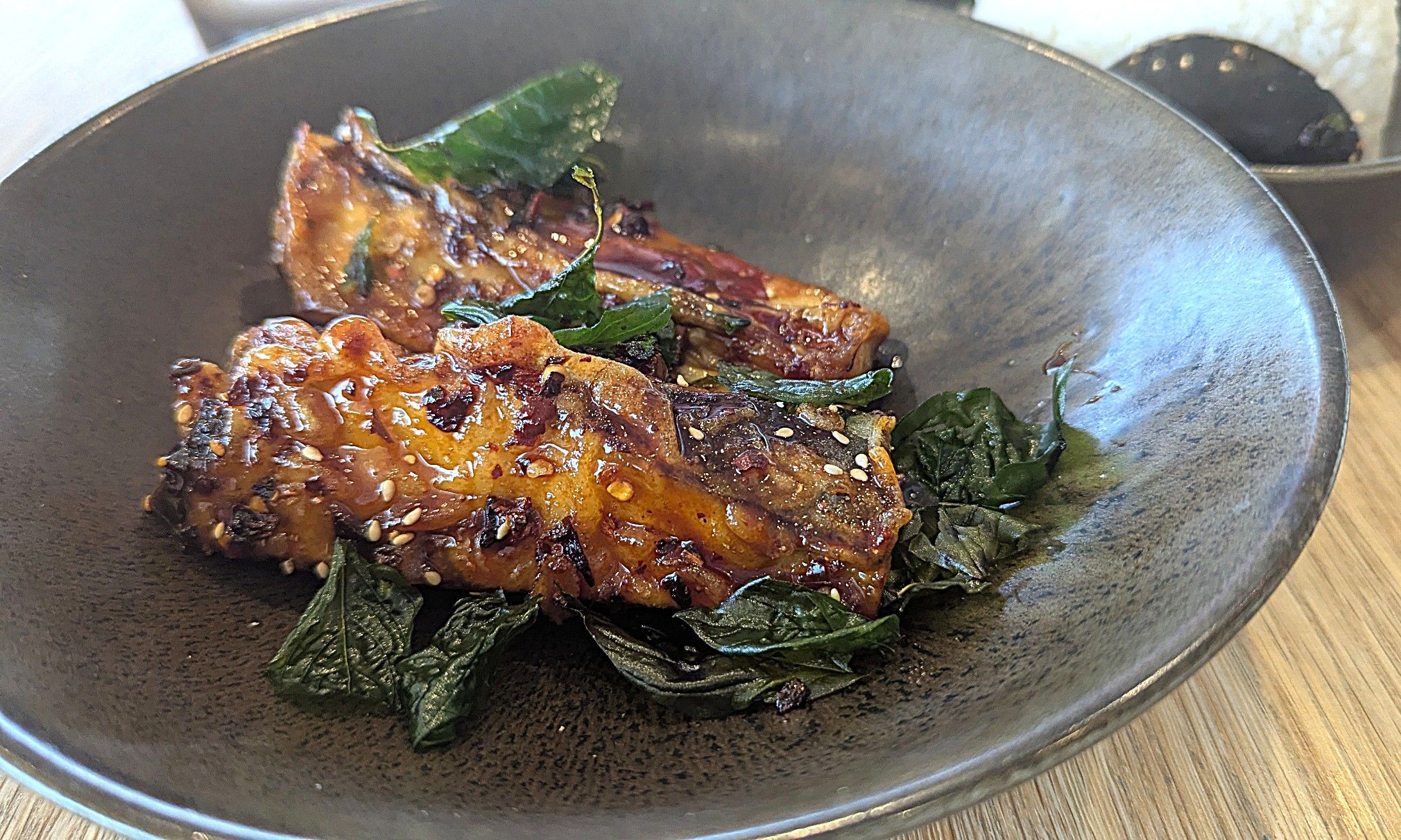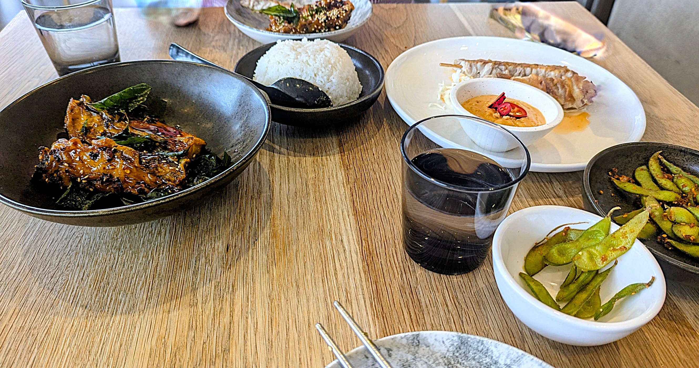 MOD at the Gallery of New South Wales is an attractive venue in the new building beside the one with which we are all so familiar. The menu is Asian inspired, and there are some catches for anyone allergic to seafood. This was dealt with deftly on this occasion so that the sate sauce with the chicken skewers was served by the side. A good idea, but the chicken skewers really need the usual treatment. However, they were succulent, and the sauce from the egg plant dish was a good accompaniment. This dish is the star of the menu. The prawn dumplings were flavoursome, but difficult to manipulate with the chopsticks – I just ended up looking inelegant. We also had the pickled vegetables, and the wonderfully addictive edamame beans. The rice was nicely cooked and a good accompaniment to the delicious sauces. Unfortunately, the service was quite erratic, and although we were happy to spend time over the meal, it did take a rather long time for the second course to arrive. An ordered drink did not arrive until ordered again. I shall return as I love the food but…