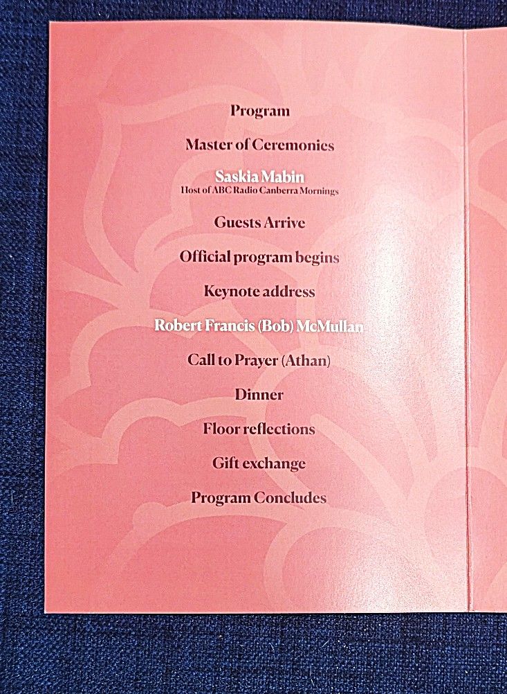 The Blue Star Institute held its annual Canberra dinner recently and Bob McMullan made the keynote address. The Bluestar Institute was formerly known as Bluestar Intercultural Centre and was founded in 2009 by local Hizmet Movement volunteers with the goal of promoting dialogue between different religious, ethnic and cultural communities. The dinner was an example of the success of the movement with representation from a broad range of religious, ethnic and cultural communities. It was a wonderful evening, and I am looking forward to joining this large group of people committed to social cohesion on future occasions.
