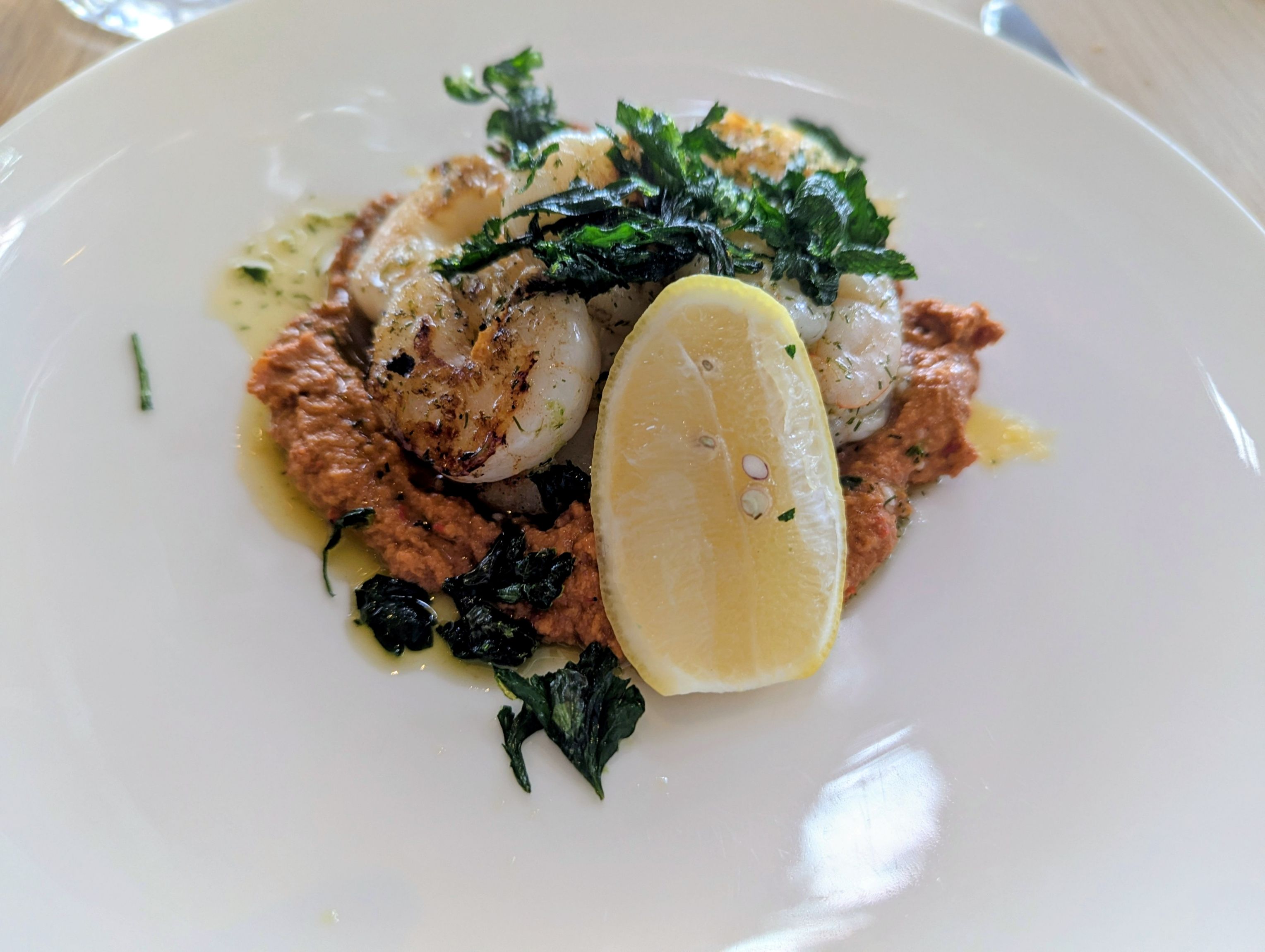 Kyst is another reason to return to this casual, friendly seaside town. This time we both had the soup which is excellent. My prawns with fried parsley, and a sumac and walnut accompaniment were delicious. The beef skewers were also successful.