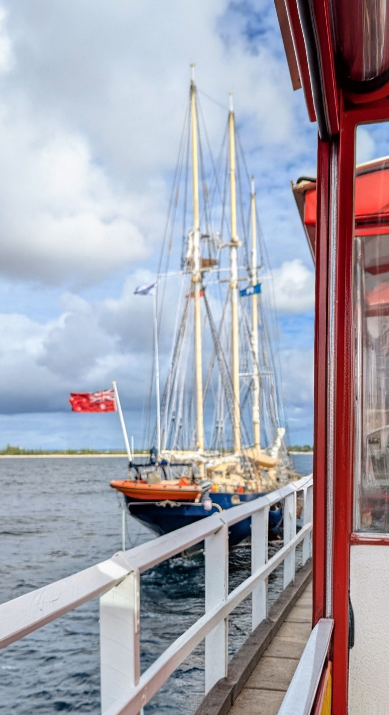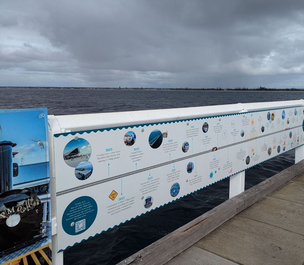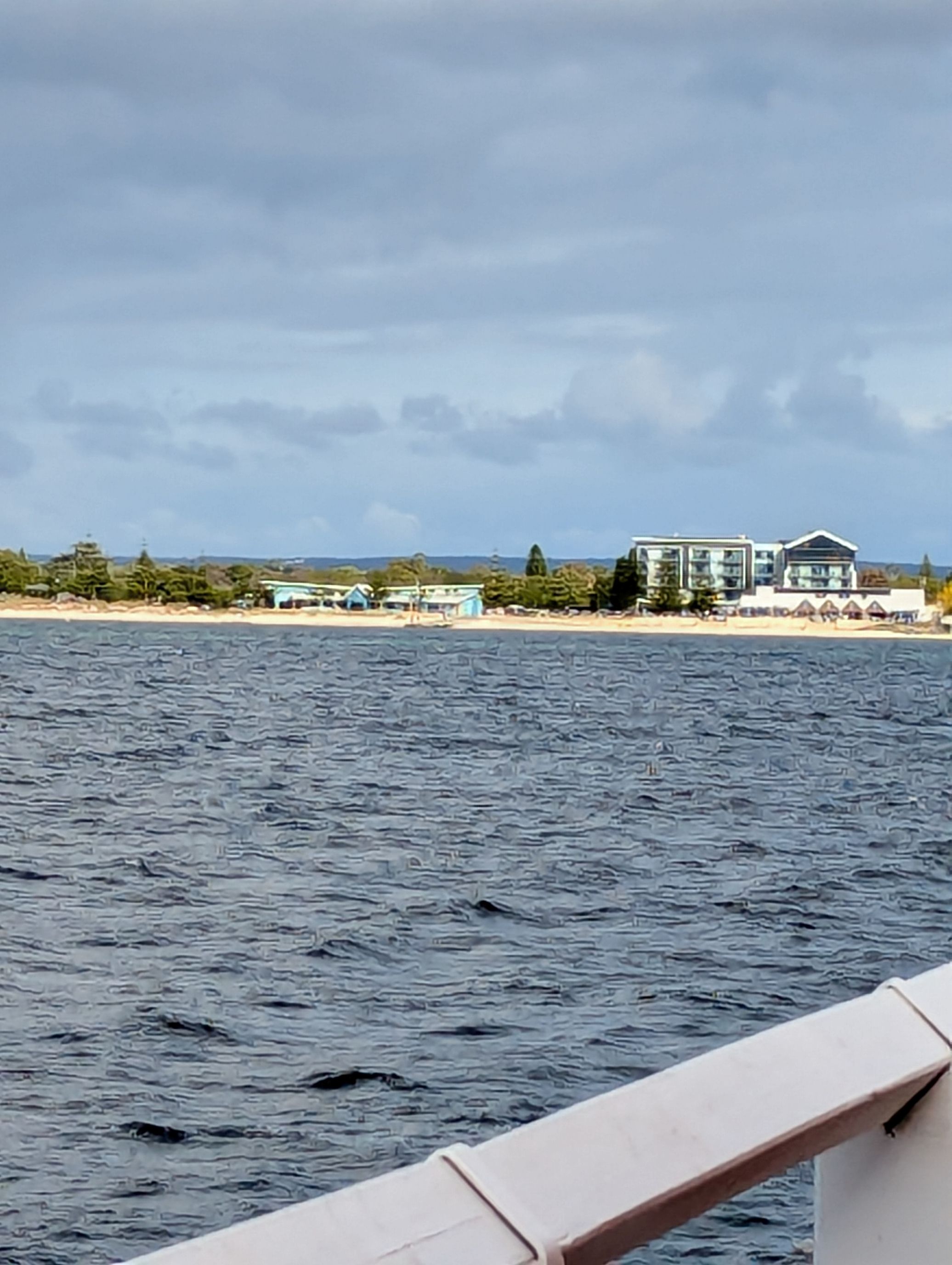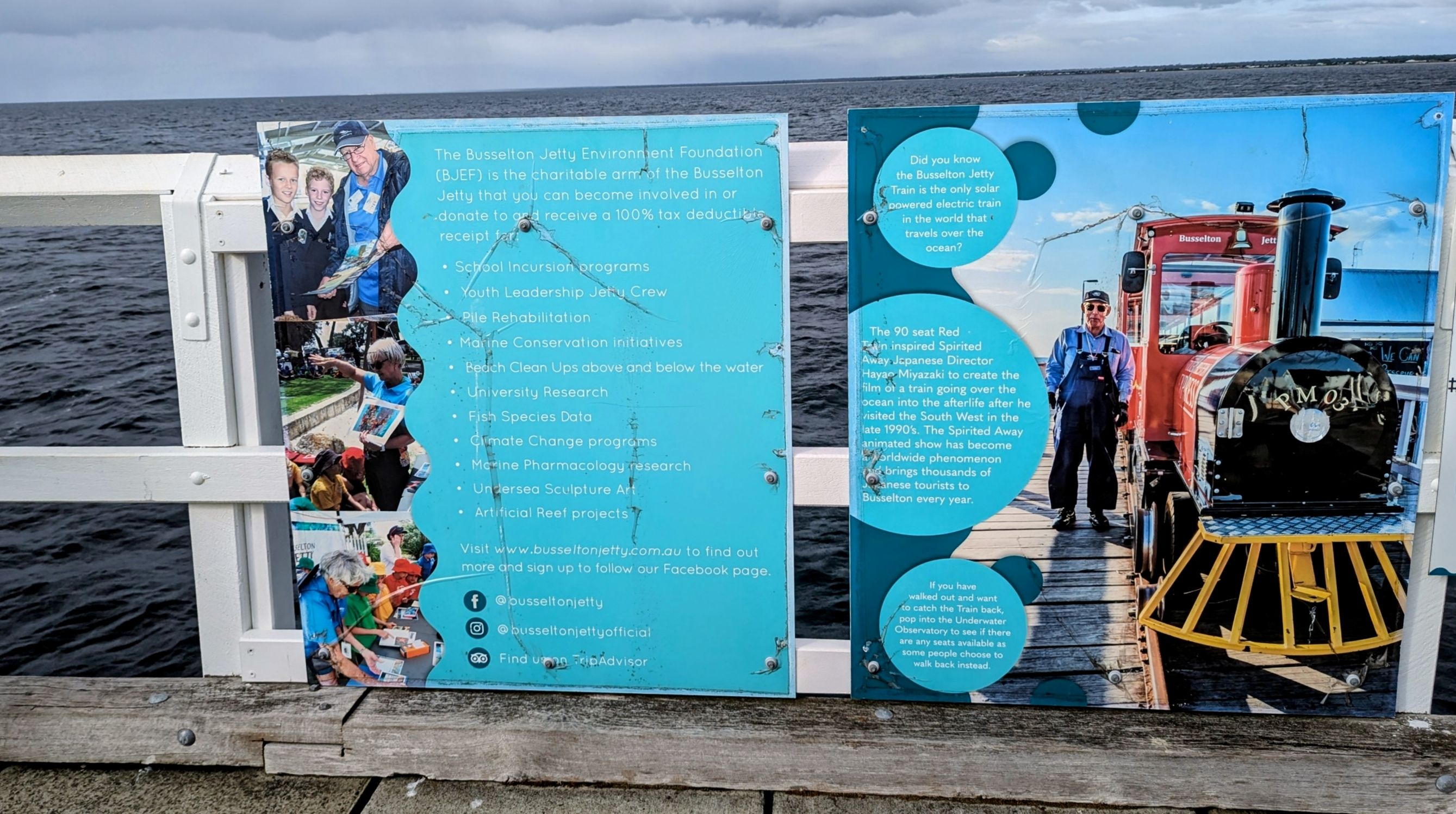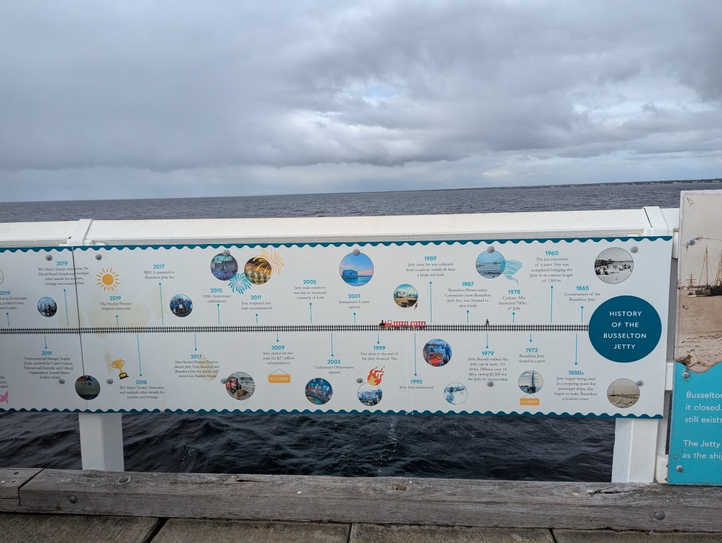 Walking halfway along the jetty was fun, but to get to the end was a ‘Lands End’ experience. To do this we took the solar powered train ride – a bumpy and slow progress, past information about the jetty and the train, people fishing, and others, more intrepid than us, walking to the end.