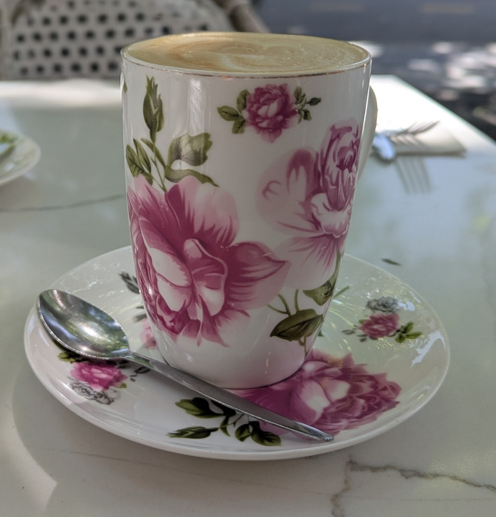 While I waited for my Indian take away (by the way, the advertised 10% deduction for pick up is not operating although advertised on the menu) I had a coffee and delicious savoury sweet bread close by.