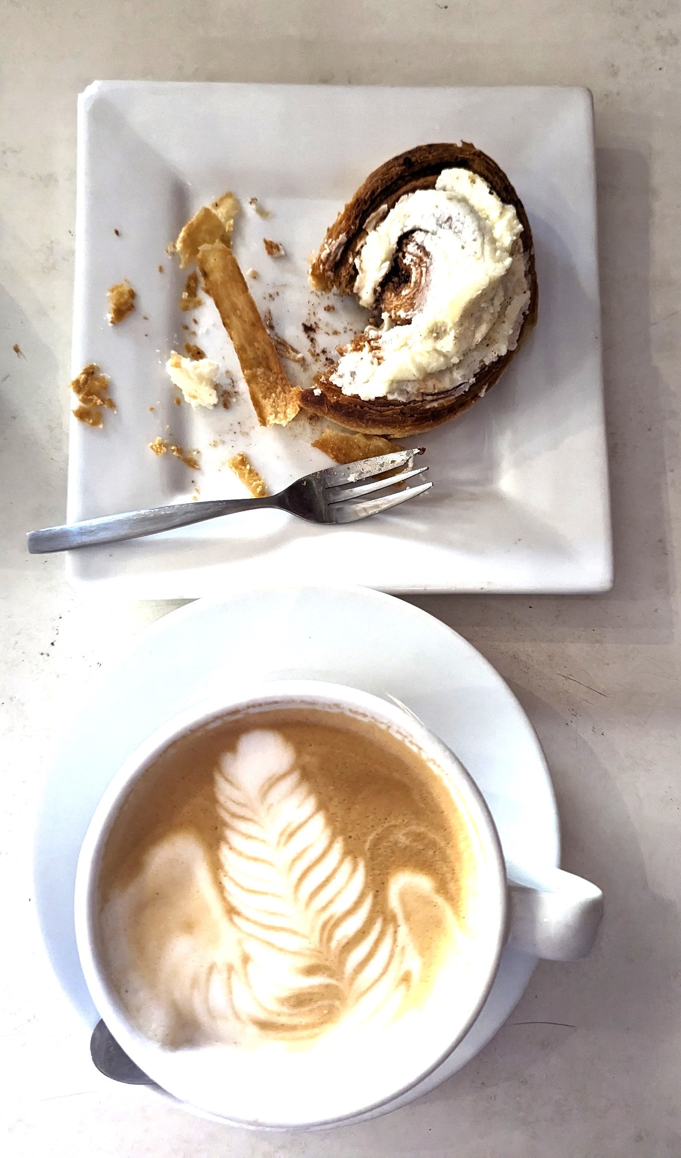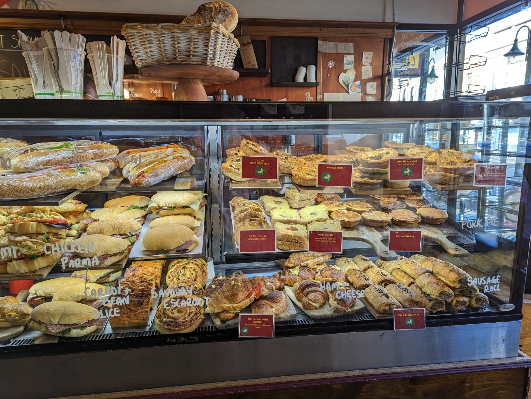 The food was substantial, and the service efficient. Although the range of pastries was limited to the usual almond croissants, banana bread, and pumpkin and walnut bread, they were very good indeed. The breakfast meals were nicely cooked and presented. They were beyond the usual cafe fare, with a tremendous breakfast bagel, and a lovely eggs benedict amongst the offerings.