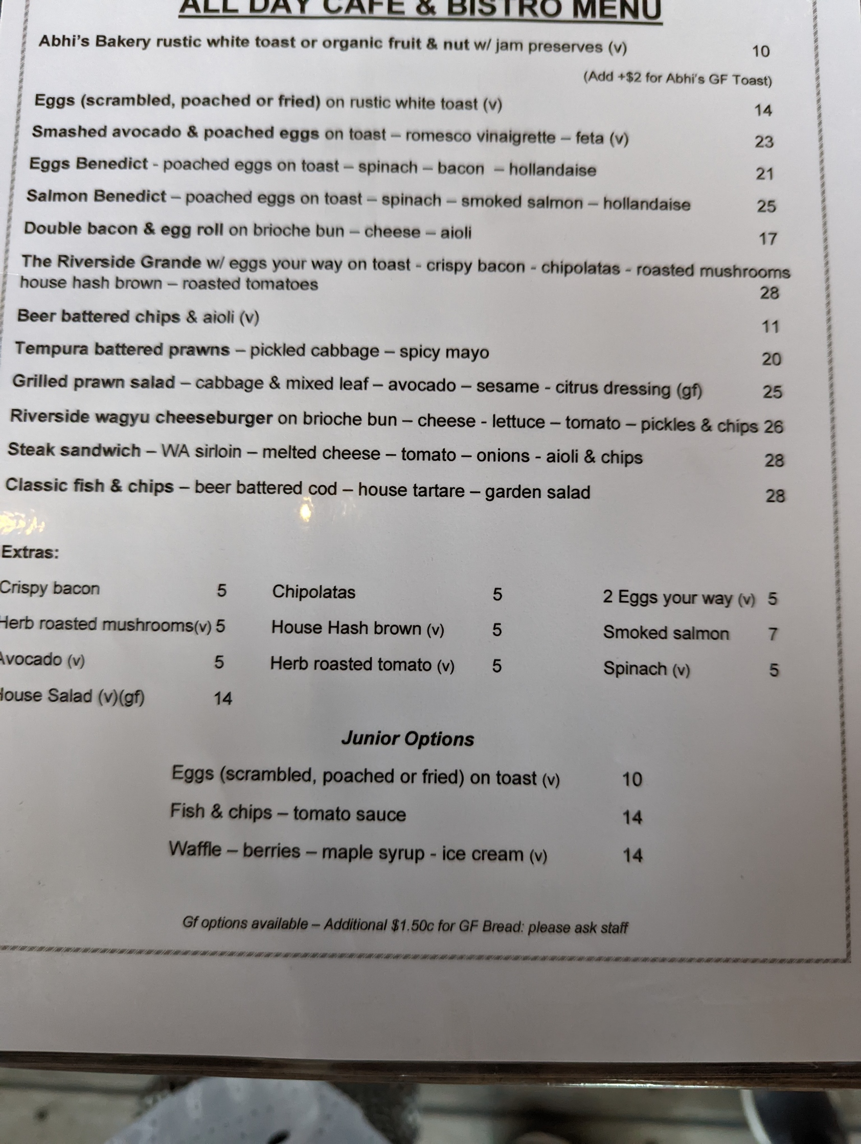 Morning coffee at Arbi’s Riverside Café and Bar is always a pleasant experience. The black swans on the Swan River are beautiful to pass on the way to the café. The river venue itself provides indoor and outdoor seating which allows for really taking in the atmosphere of dining by the Swan River. The service here is very efficient, and although I have had only my morning coffee, the menu offers a good choice of meals.
