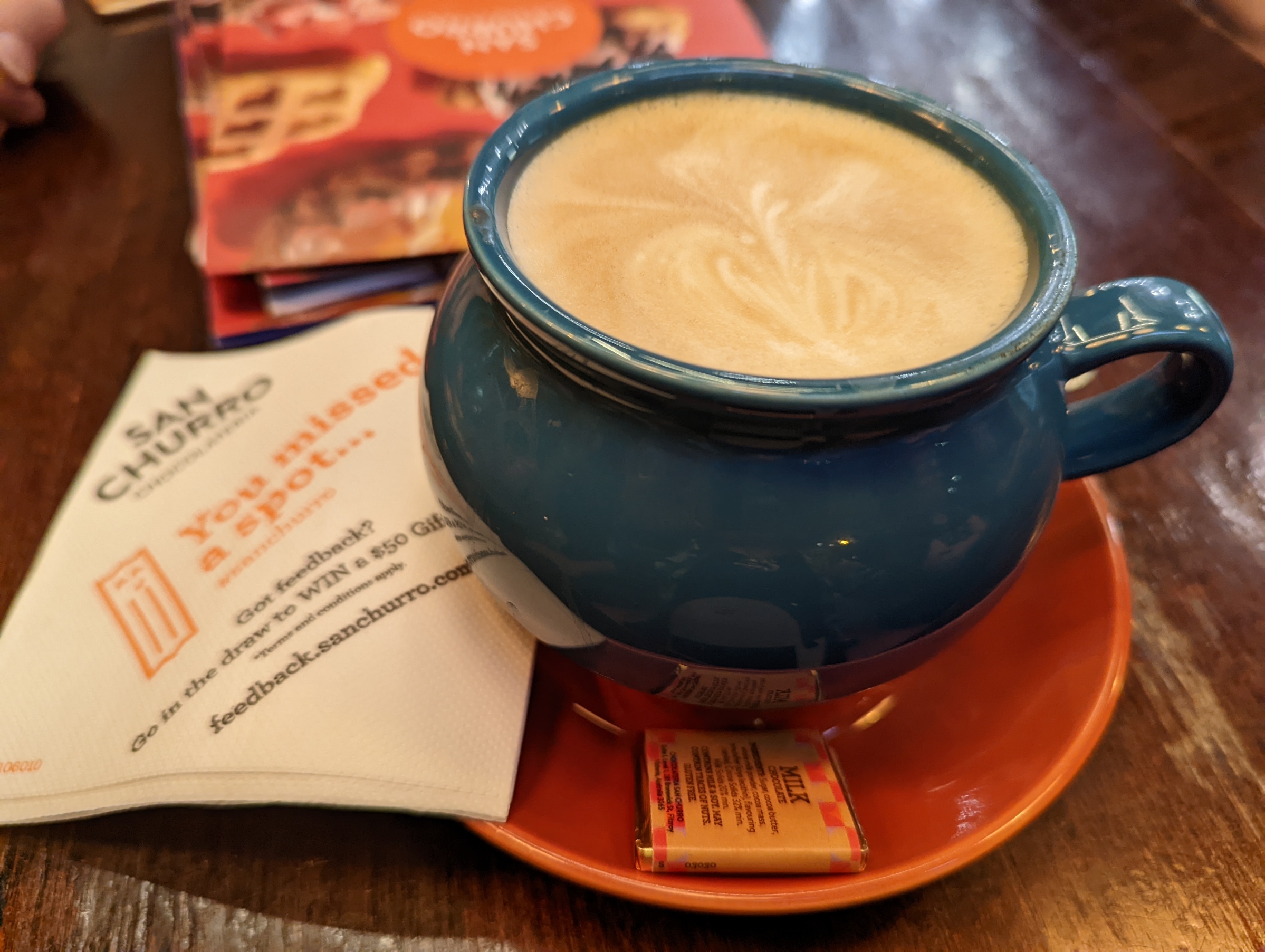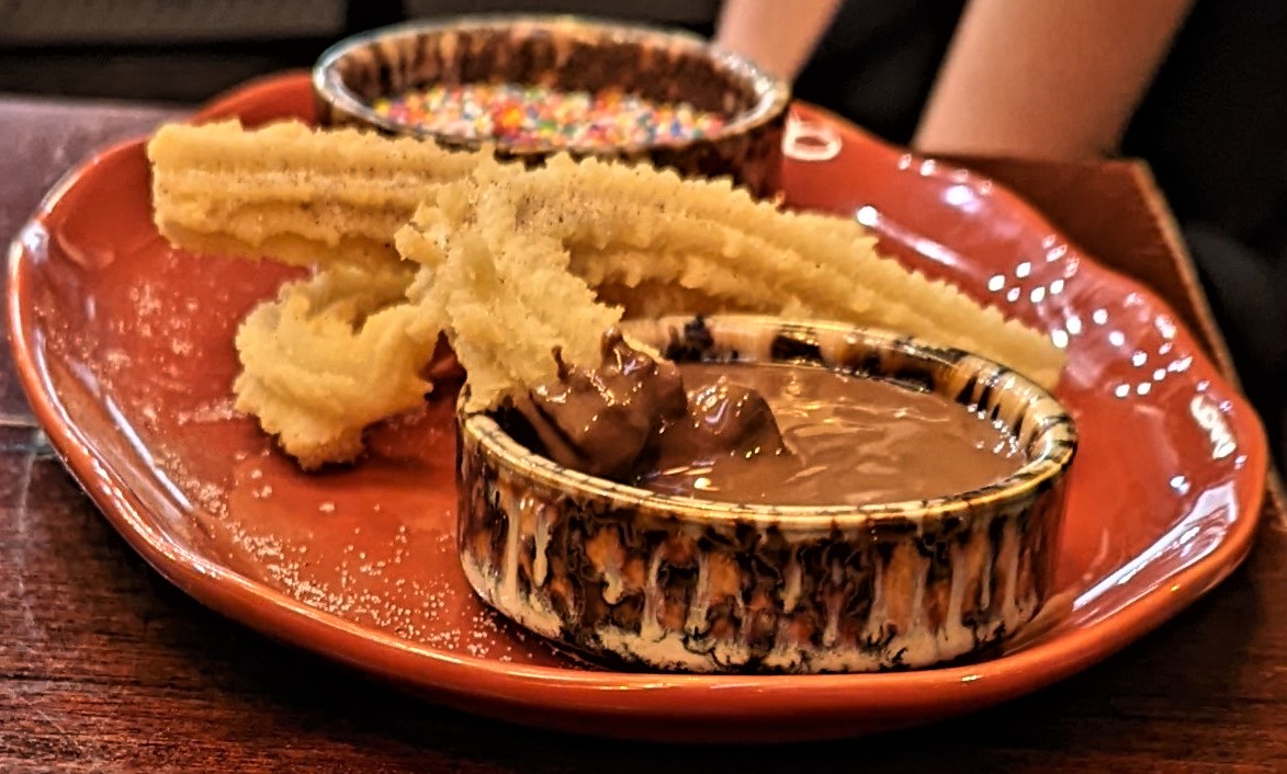 I was fortunate to be part of a large family gathering in a shopping centre in Midland where there is a variety of food outlets. They are family oriented but warm and friendly rather than noisy. We began at Dome, where the menu seems to go on forever, but does not impact negatively on the food. My Asian squid salad was delicious. After Dome we walked the short distance to San Churros, where the children had churros with chocolate sauce (some added sprinkles) while the adults had excellent coffee.