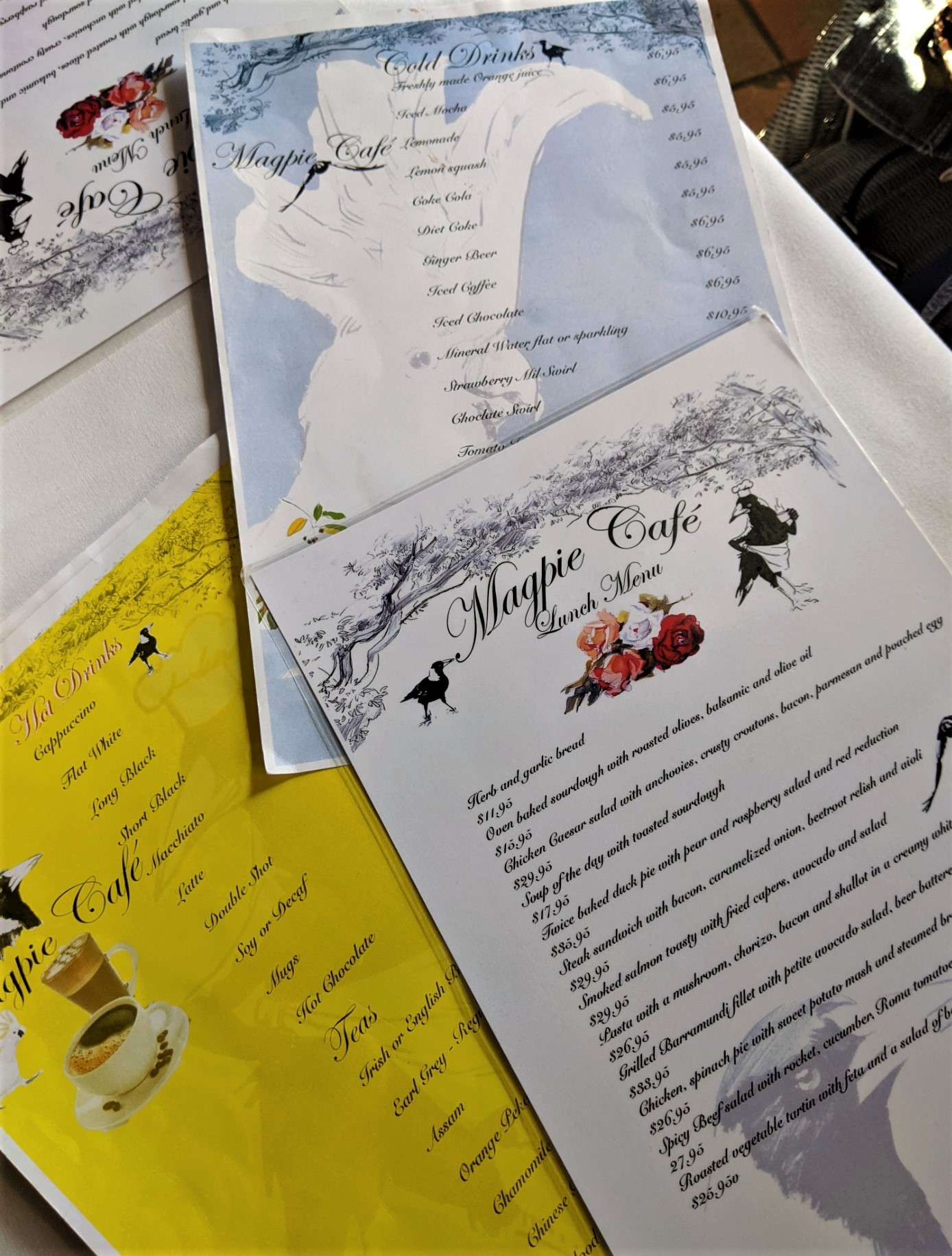 The Magpie Café in Berrima is a wonderful stop over for morning or after noon tea, and lunch. There is outdoor seating as well as well spaced tables inside. White table cloths – delightful. The last time I saw cakes displayed in such luscious variety was in Lucca, Italy. Tea is served in pots – with a tea strainer: not a tea bag in sight. Service is prompt and charming. My palmier was crisp, with a lovely sugary crunch , and far too large to finish. In the past I have enjoyed the date scones with their generous serving of butter; and the warm and flavoursome pumpkin soup with a serving of crusty bread.