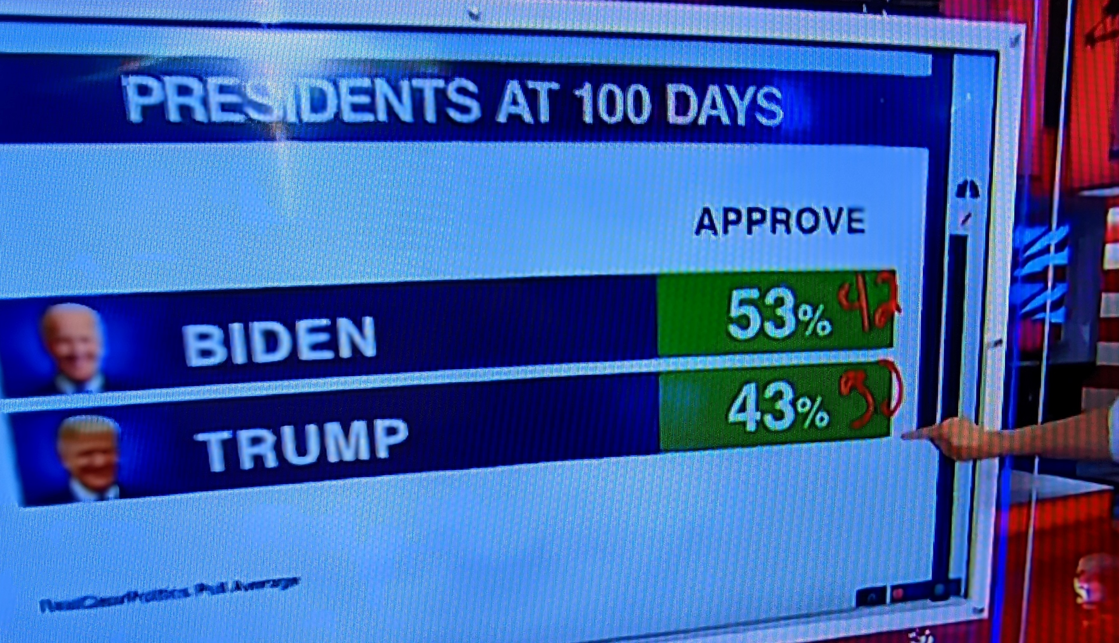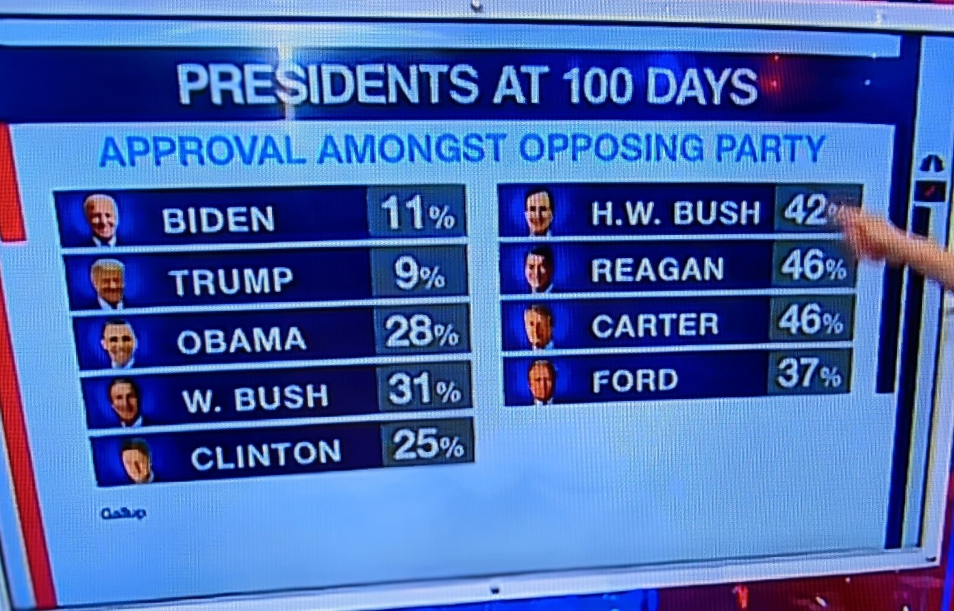 Steve Kornacki (MNSBC) provided the following information on President Biden’s ratings after 100 days:
